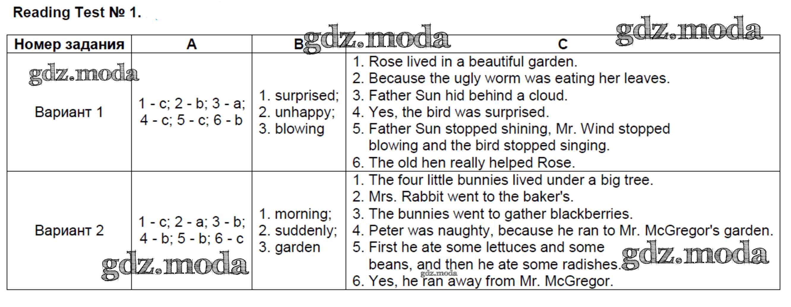 ОТВЕТ на задание № 1 Контрольно-измерительные материалы (КИМ) по Английскому языку 6 класс Сухоросова
