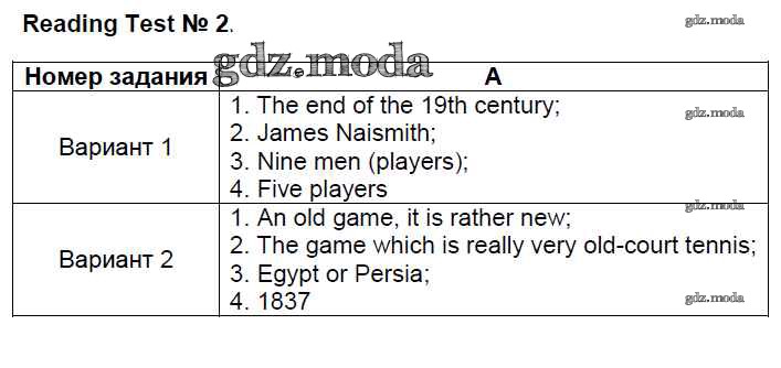 ОТВЕТ на задание № 2 Контрольно-измерительные материалы (КИМ) по Английскому языку 6 класс Сухоросова