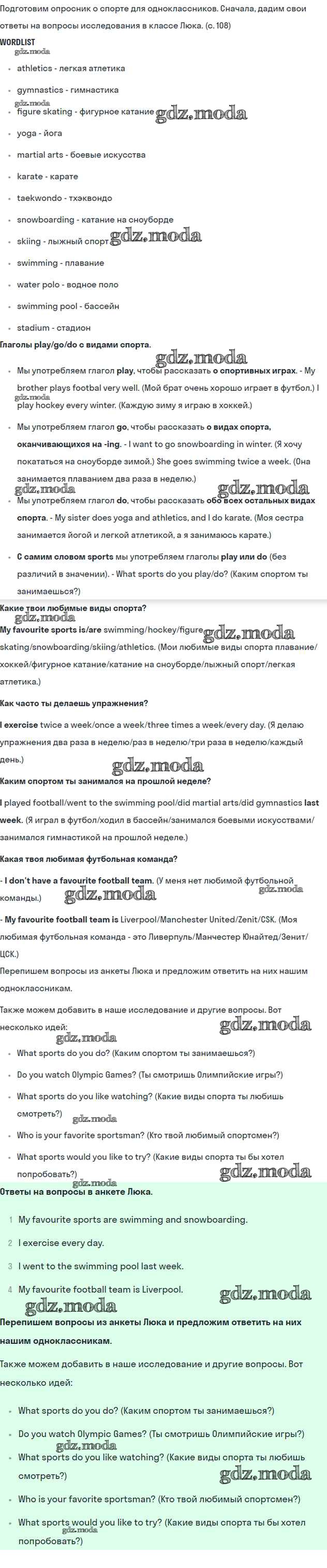 ГДЗ решение к заданию № 108 Английский язык 6 класс Комарова Русское слово 2022 ФГОС бесплатно на гдз.мода!