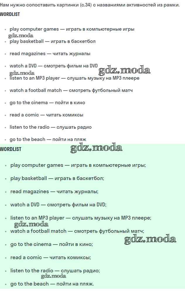 ГДЗ решение к заданию № 34 Английский язык 6 класс Комарова Русское слово 2022 ФГОС бесплатно на гдз.мода!