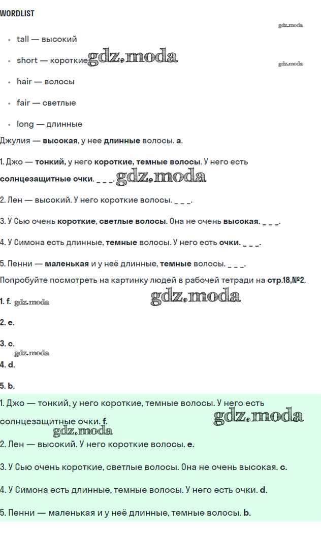 ГДЗ решение к заданию № 18 Английский язык 6 класс Комарова рабочая тетрадь Русское слово 2012 ФГОС бесплатно на гдз.мода!