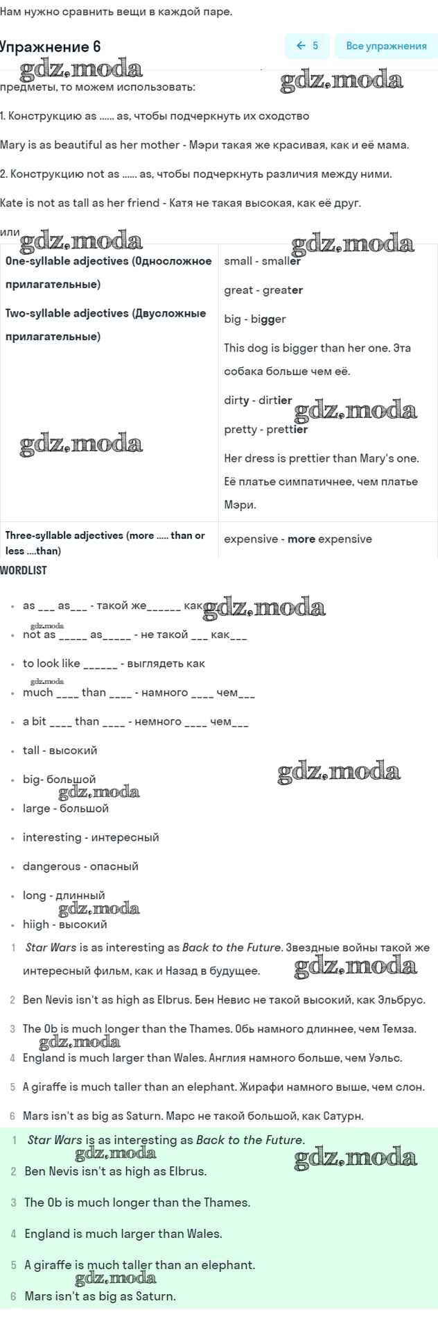 ГДЗ решение к заданию № 6 Английский язык 6 класс Кузовлёв В.П. Просвещение 2014 ФГОС бесплатно на гдз.мода!