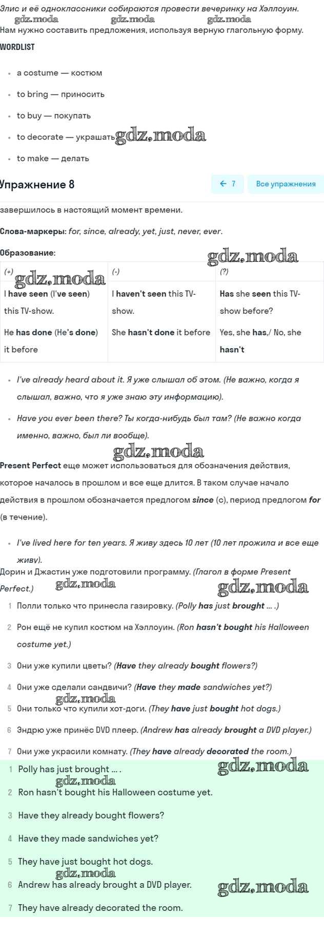 ГДЗ решение к заданию № 8 Английский язык 6 класс Кузовлёв В.П. Просвещение 2014 ФГОС бесплатно на гдз.мода!