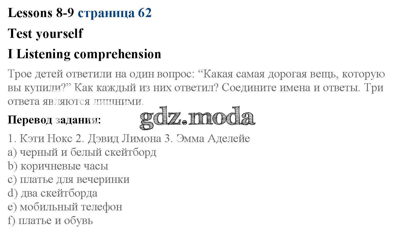 ГДЗ решение к заданию № 62 Английский язык 6 класс рабочая тетрадь Кузовлёв Просвещение 2015 ФГОС бесплатно на гдз.мода!