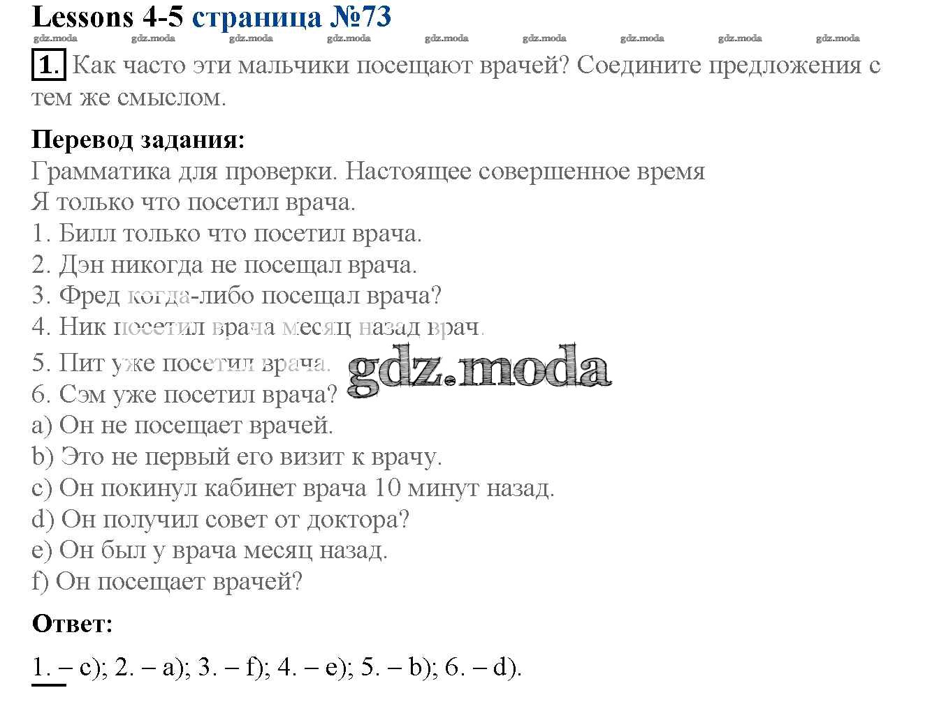 ГДЗ решение к заданию № 73 Английский язык 6 класс рабочая тетрадь Кузовлёв Просвещение 2015 ФГОС бесплатно на гдз.мода!