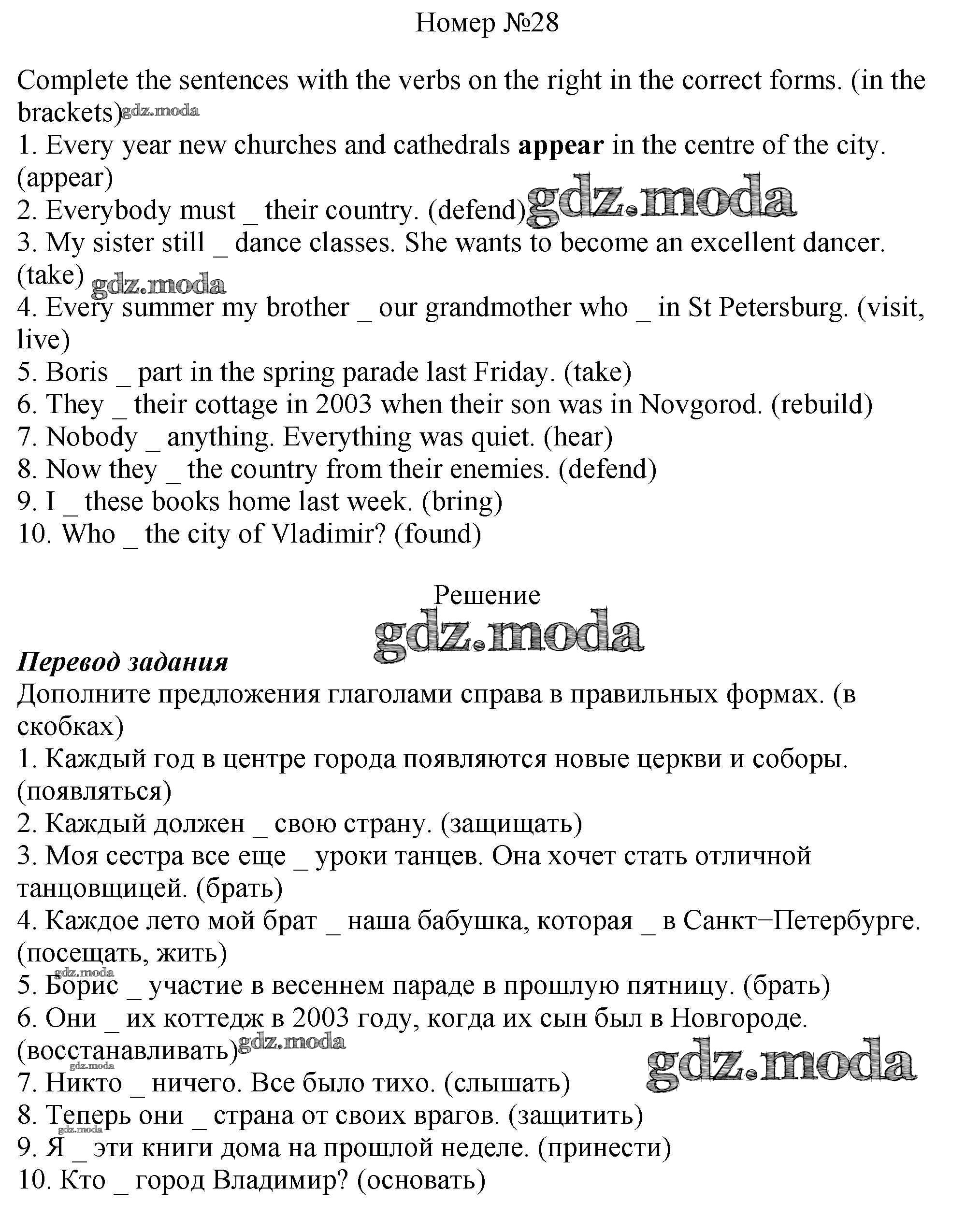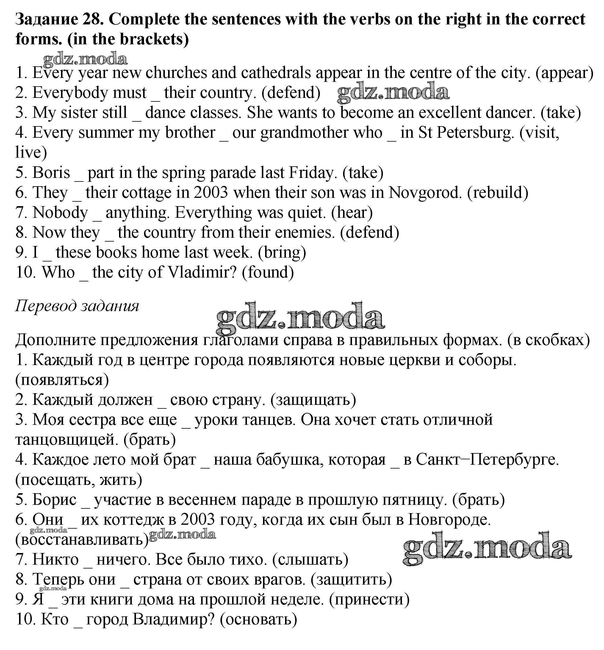 ОТВЕТ на задание № 28 Рабочая тетрадь по Английскому языку 6 класс Афанасьева Rainbow