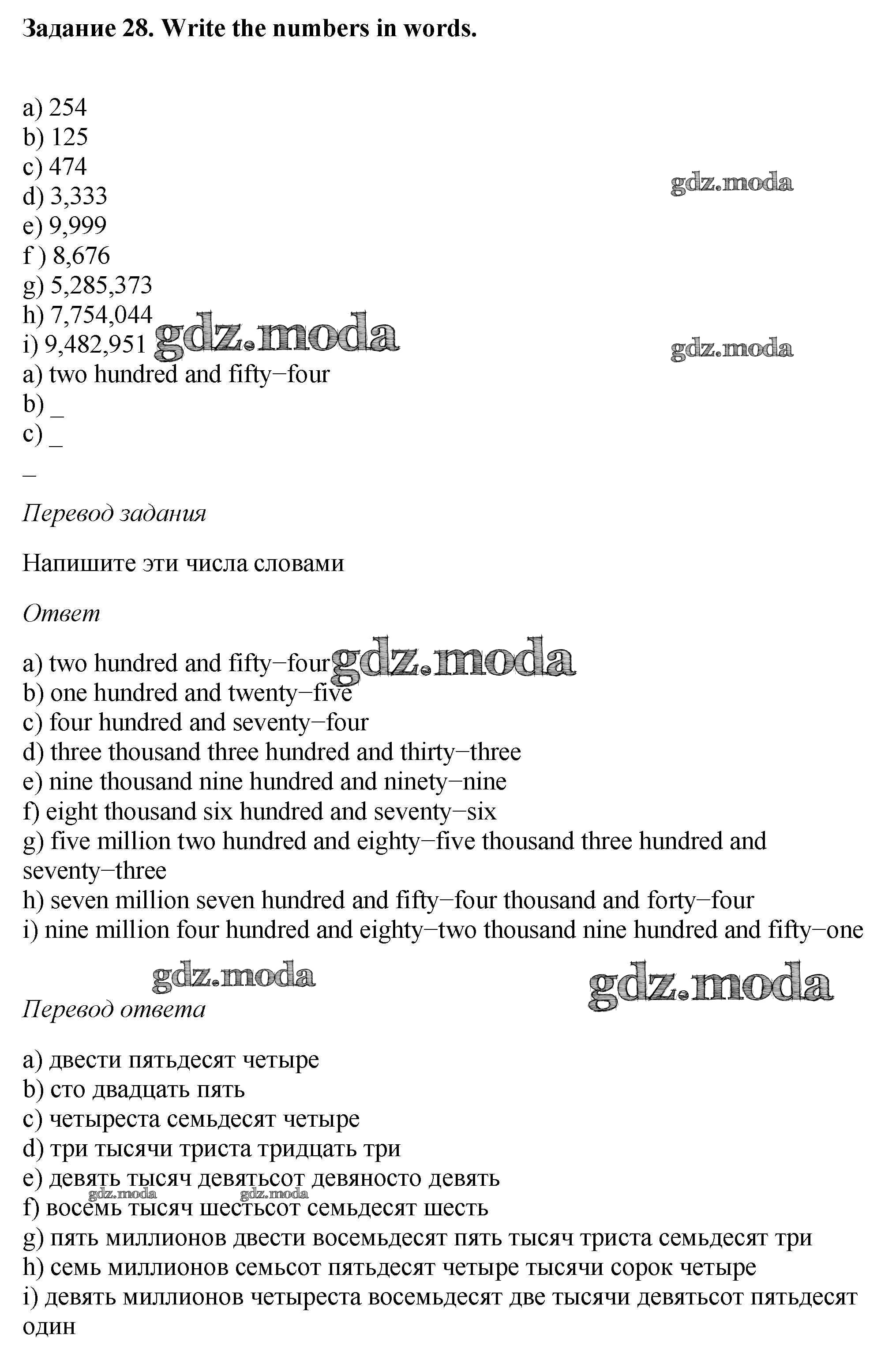 ОТВЕТ на задание № 28 Рабочая тетрадь по Английскому языку 6 класс Афанасьева Rainbow