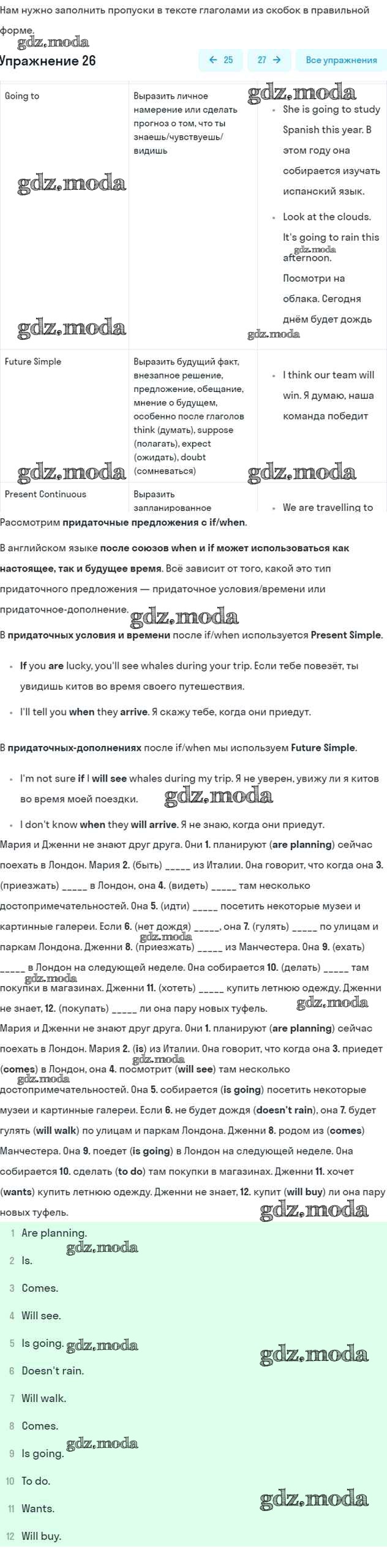 ОТВЕТ на задание № 26 Рабочая тетрадь по Английскому языку 6 класс Афанасьева Rainbow