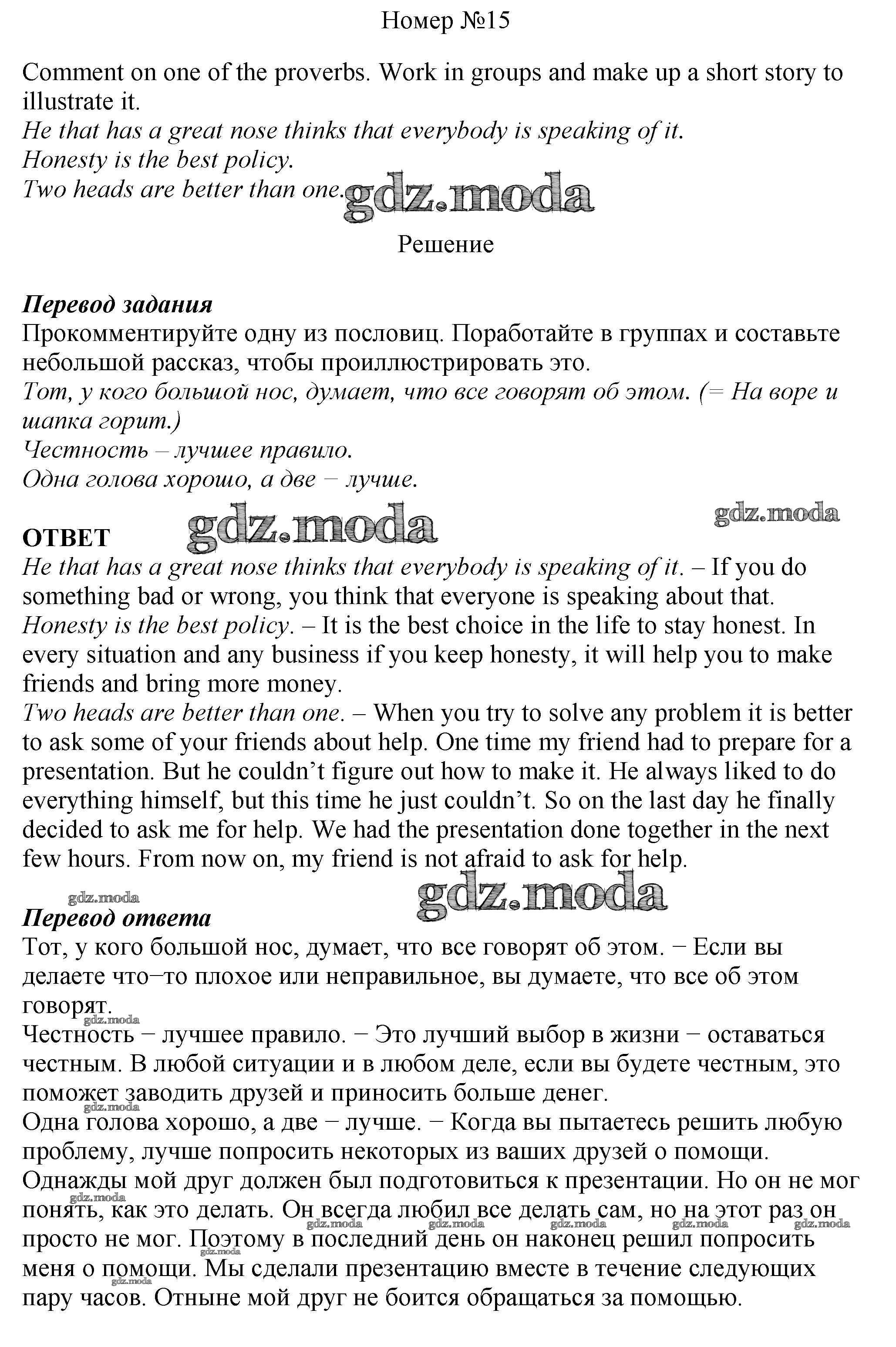 ОТВЕТ на задание № 15 Рабочая тетрадь по Английскому языку 6 класс Афанасьева Rainbow