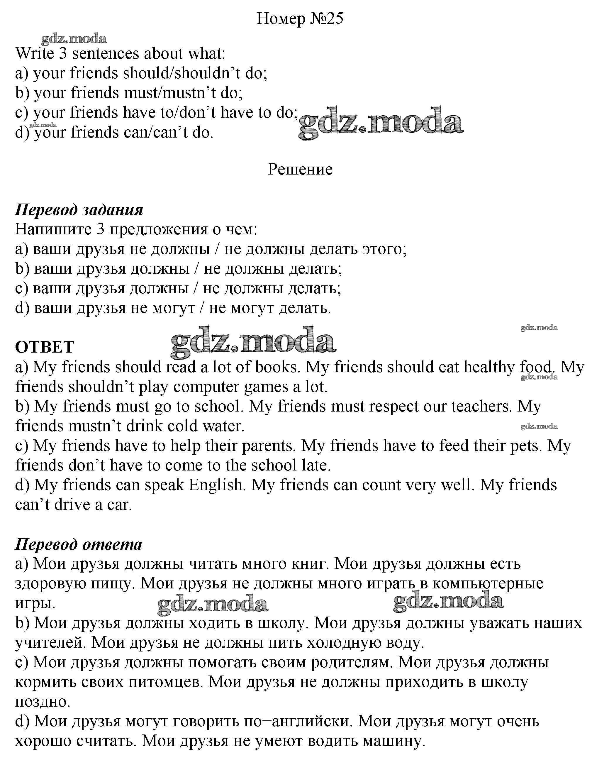 ОТВЕТ на задание № 25 Рабочая тетрадь по Английскому языку 6 класс Афанасьева Rainbow