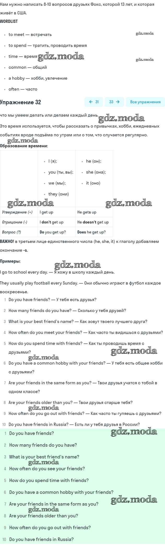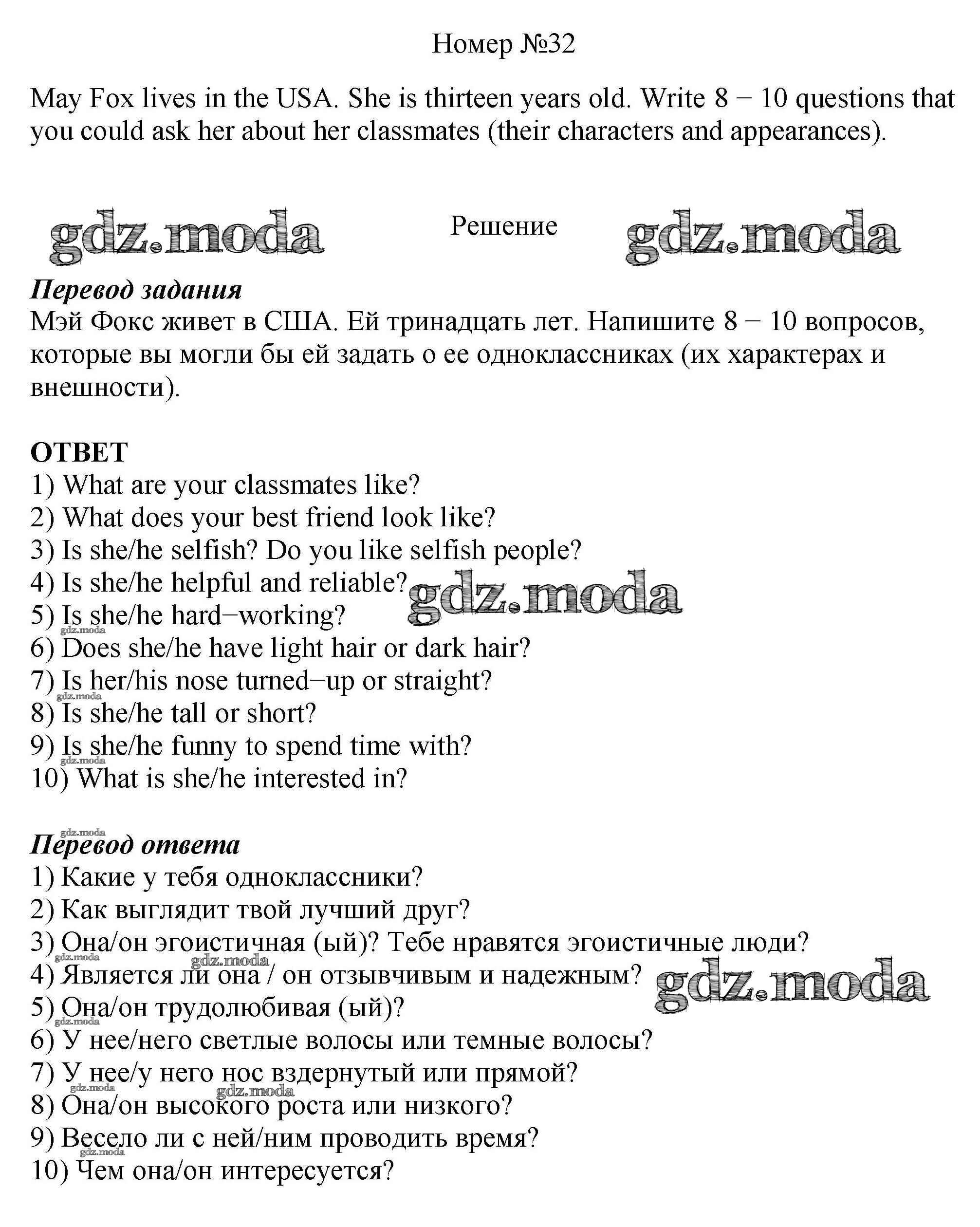 ОТВЕТ на задание № 32 Рабочая тетрадь по Английскому языку 6 класс Афанасьева Rainbow