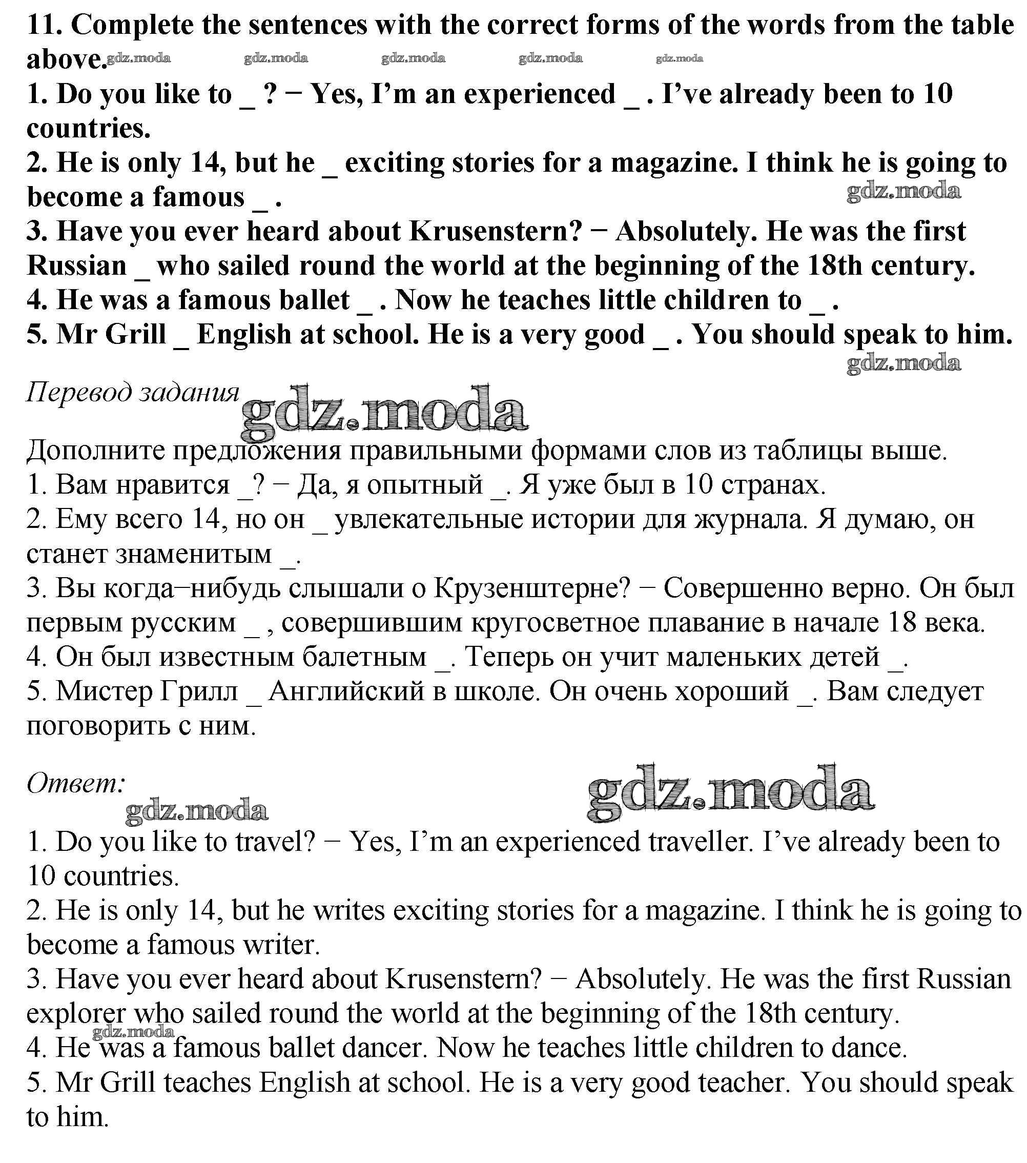 ОТВЕТ на задание № 11 Рабочая тетрадь по Английскому языку 6 класс Биболетова Enjoy English