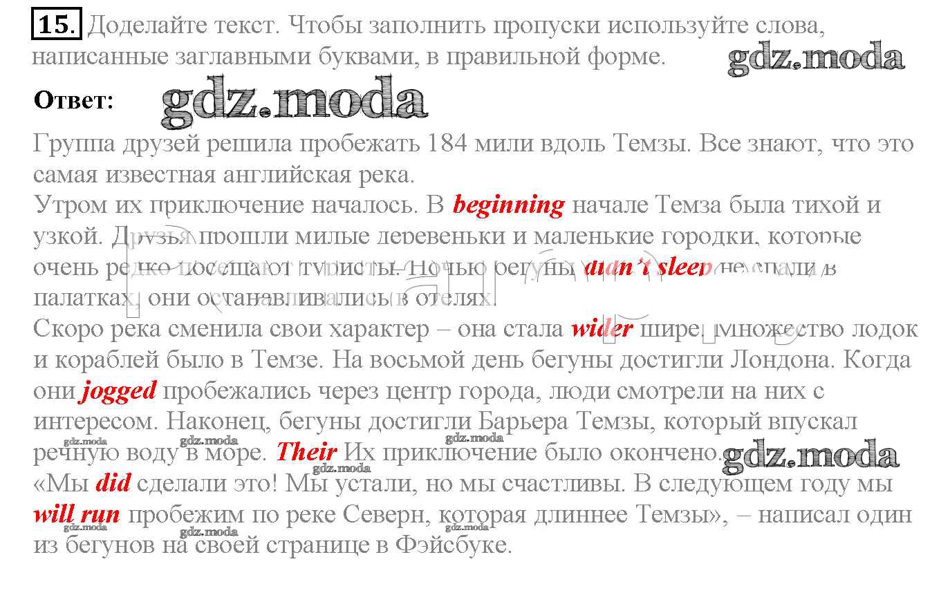 ОТВЕТ на задание № 15 Рабочая тетрадь по Английскому языку 6 класс Биболетова Enjoy English