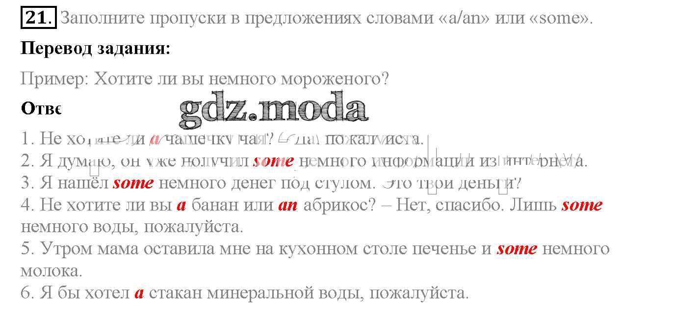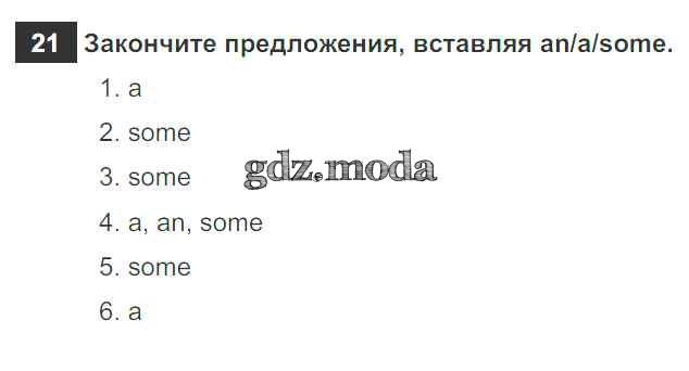 ОТВЕТ на задание № 21 Рабочая тетрадь по Английскому языку 6 класс Биболетова Enjoy English