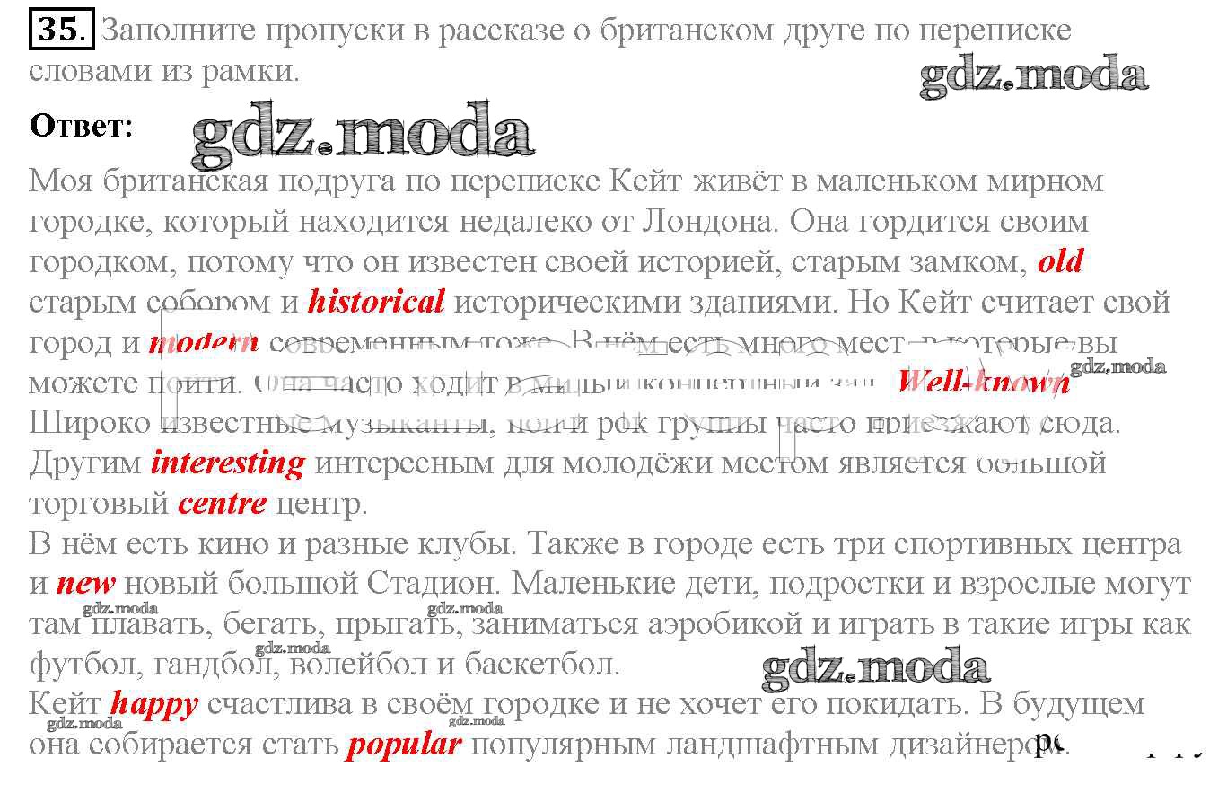 ОТВЕТ на задание № 35 Рабочая тетрадь по Английскому языку 6 класс Биболетова Enjoy English