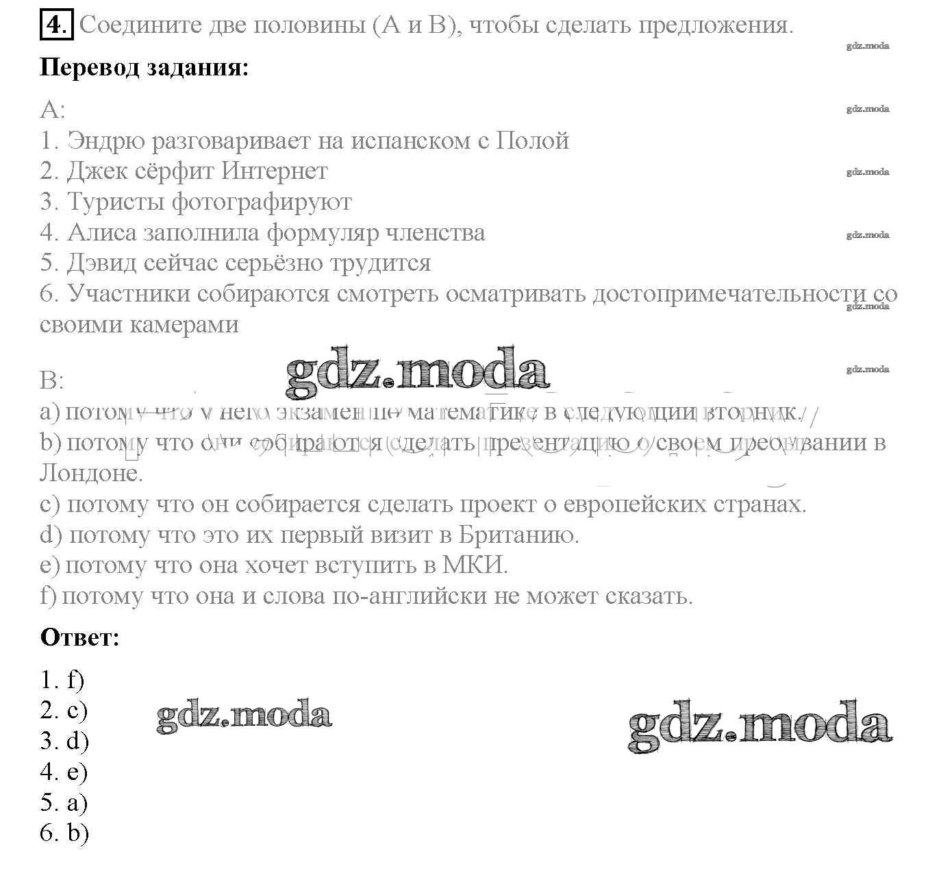 ОТВЕТ на задание № 4 Рабочая тетрадь по Английскому языку 6 класс Биболетова Enjoy English