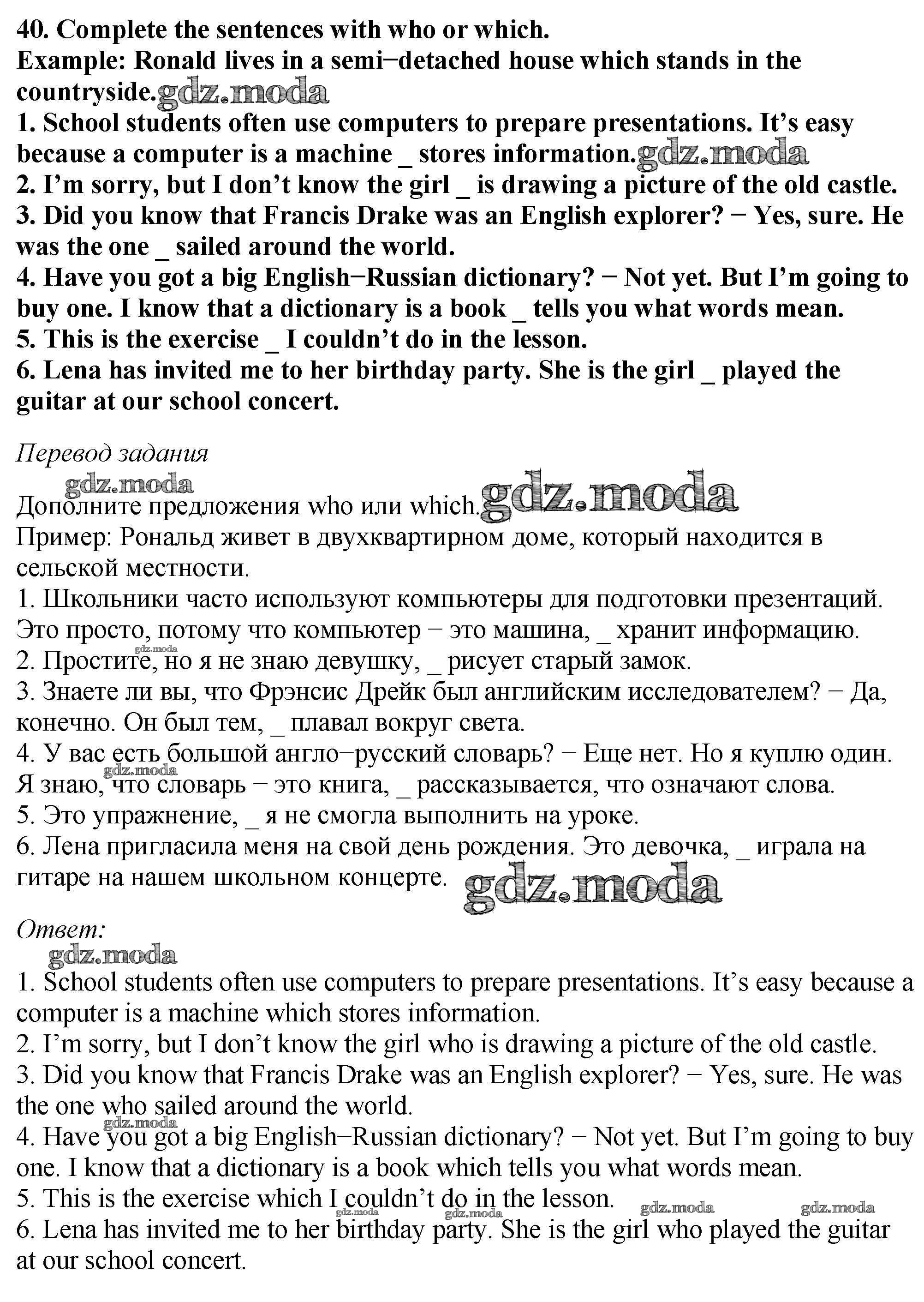 ОТВЕТ на задание № 40 Рабочая тетрадь по Английскому языку 6 класс Биболетова Enjoy English