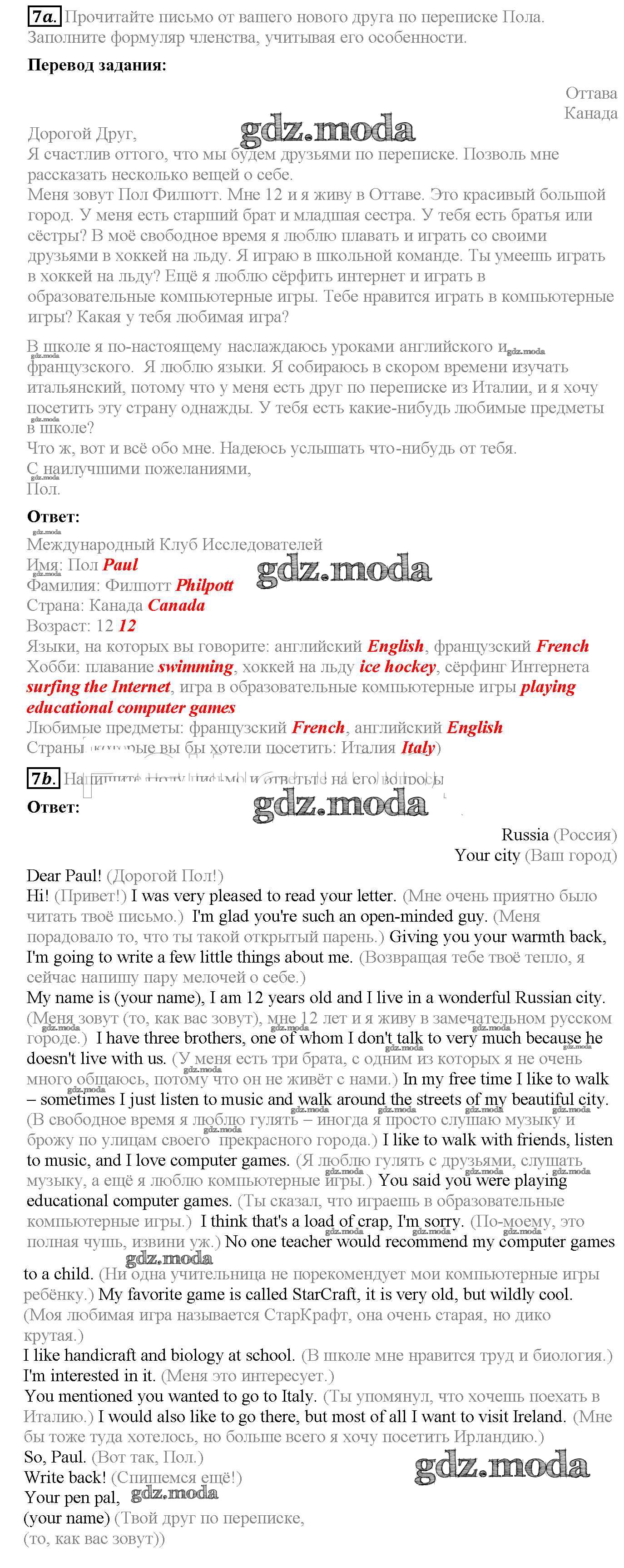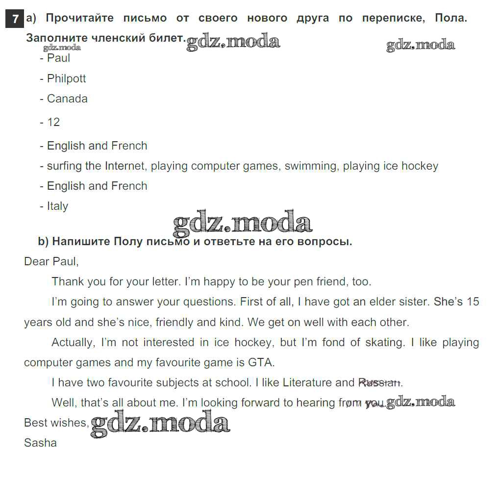 ОТВЕТ на задание № 7 Рабочая тетрадь по Английскому языку 6 класс Биболетова Enjoy English