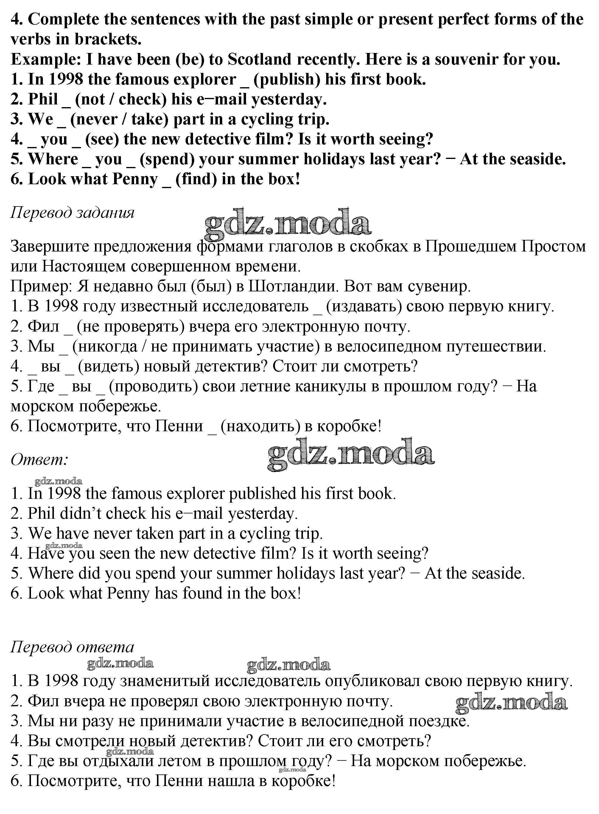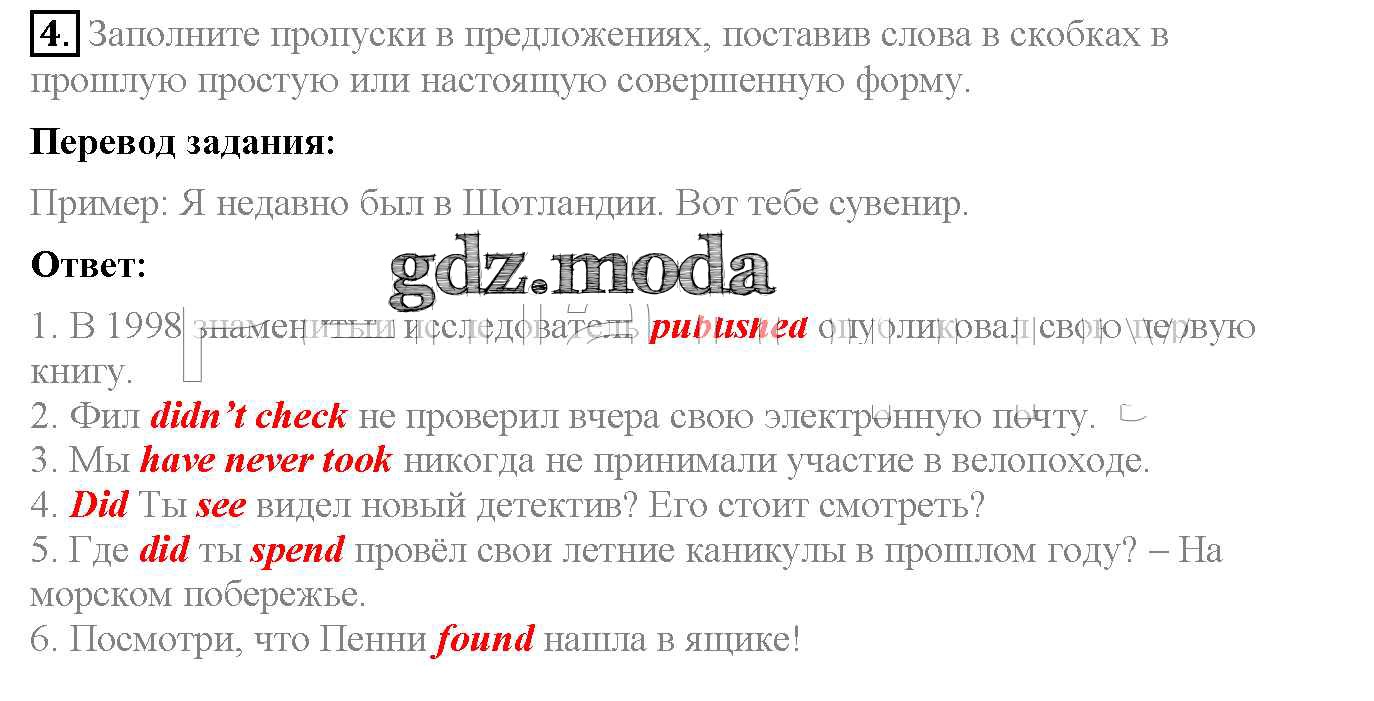 ОТВЕТ на задание № 4 Рабочая тетрадь по Английскому языку 6 класс Биболетова Enjoy English