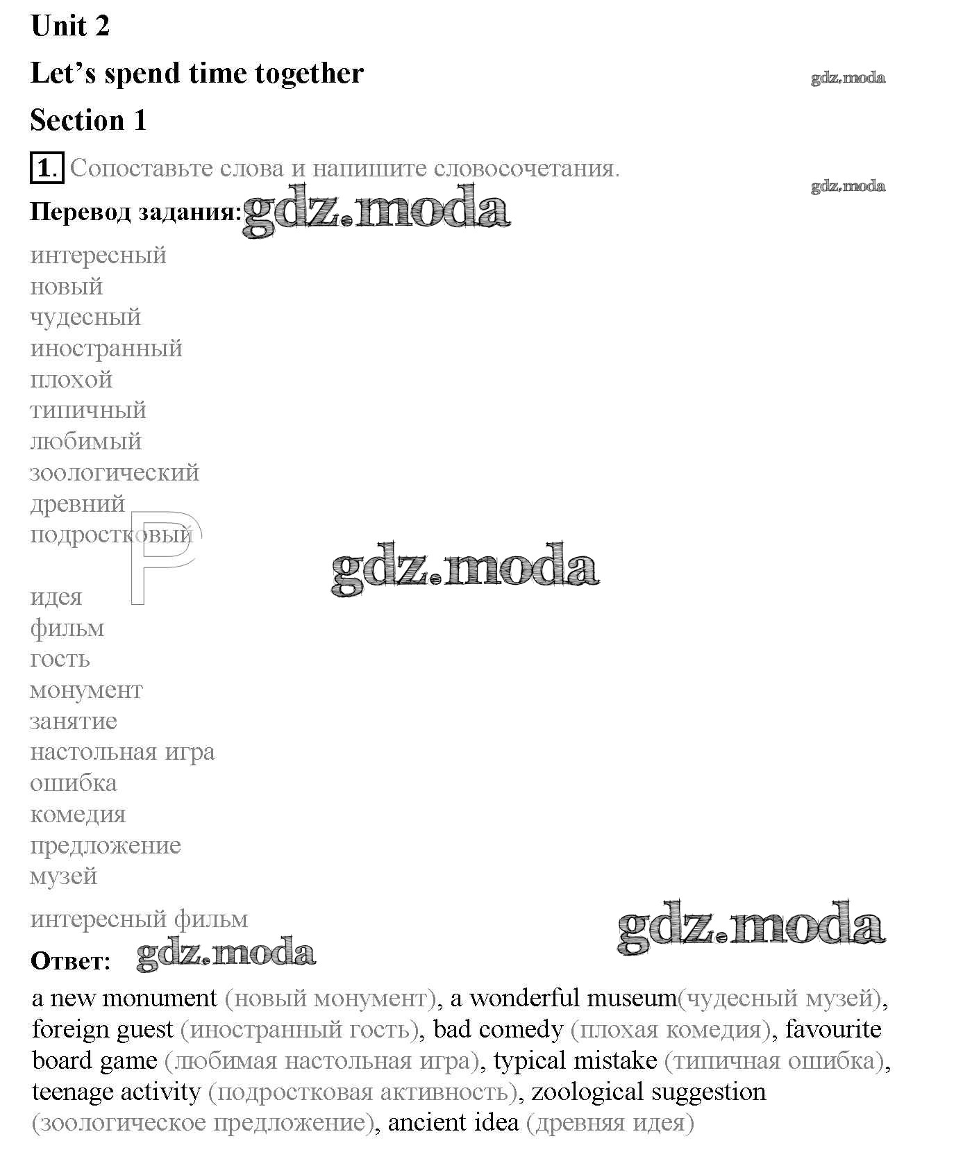 ОТВЕТ на задание № 1 Рабочая тетрадь по Английскому языку 6 класс Биболетова Enjoy English