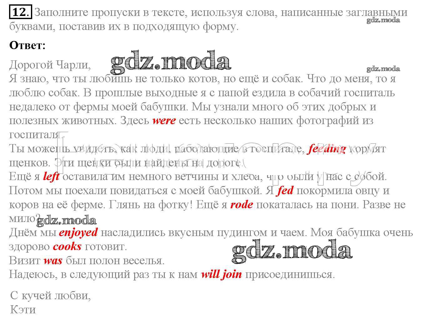 ОТВЕТ на задание № 12 Рабочая тетрадь по Английскому языку 6 класс Биболетова Enjoy English