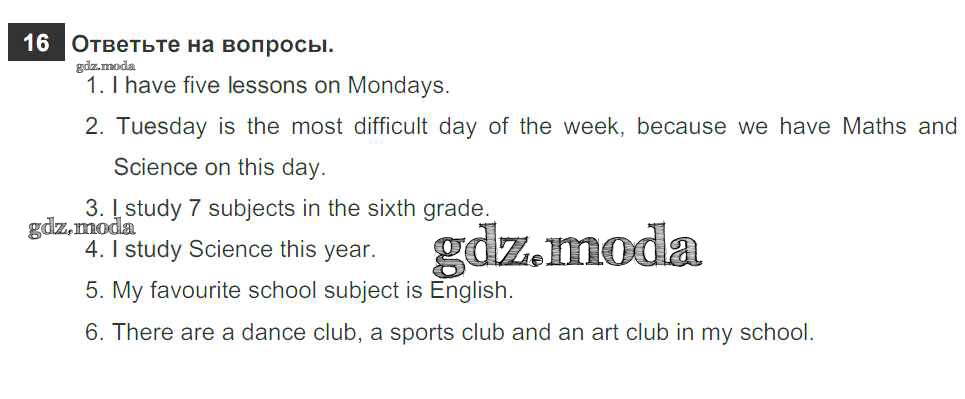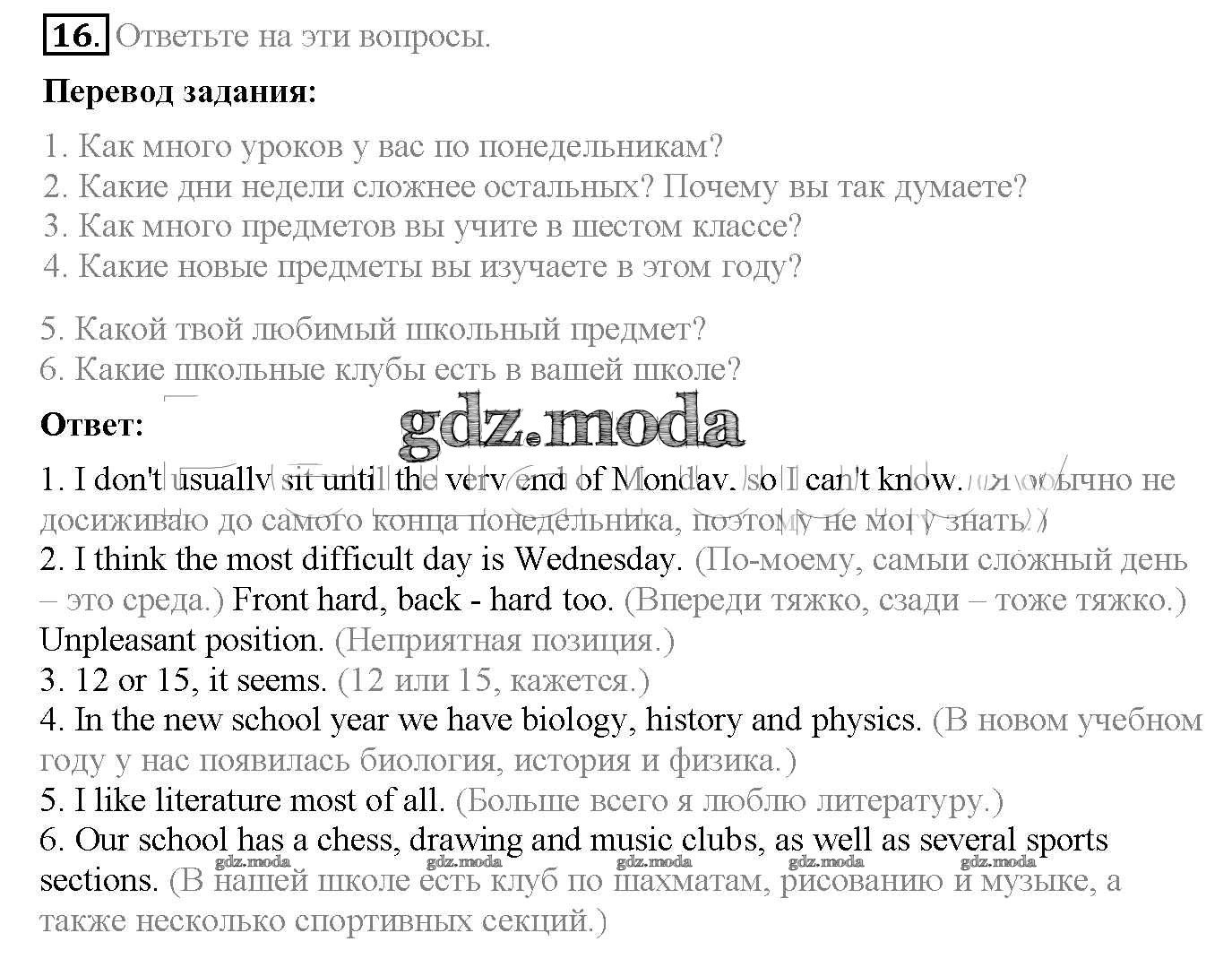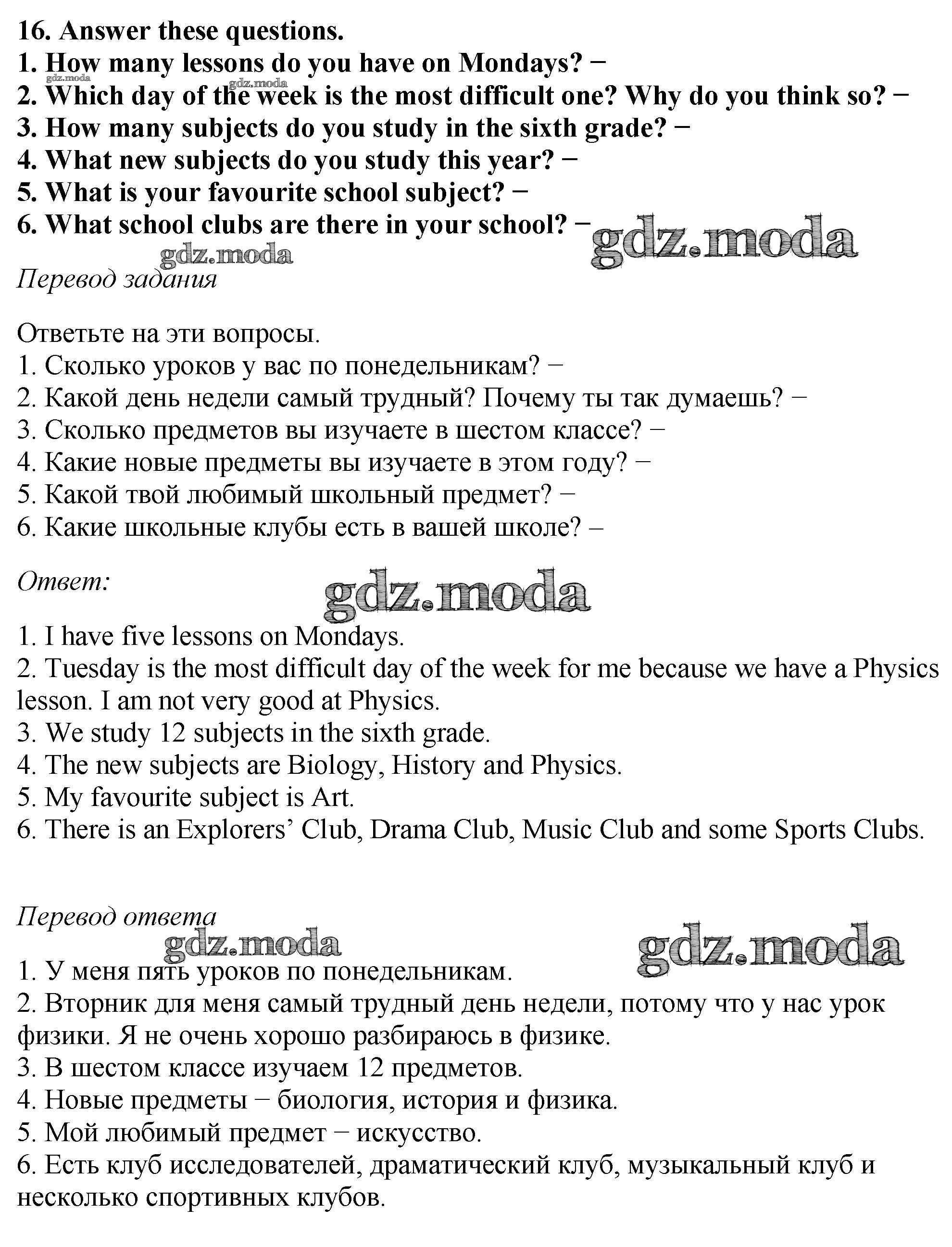 ОТВЕТ на задание № 16 Рабочая тетрадь по Английскому языку 6 класс Биболетова Enjoy English
