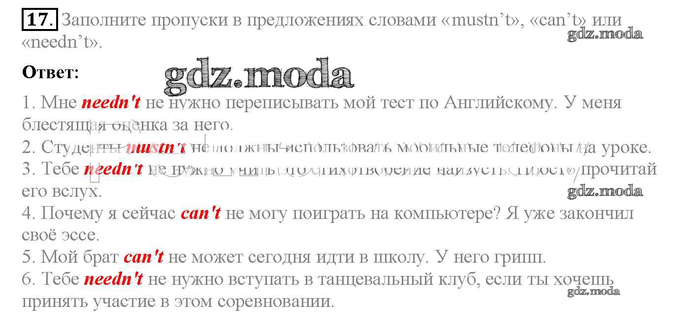ОТВЕТ на задание № 17 Рабочая тетрадь по Английскому языку 6 класс Биболетова Enjoy English