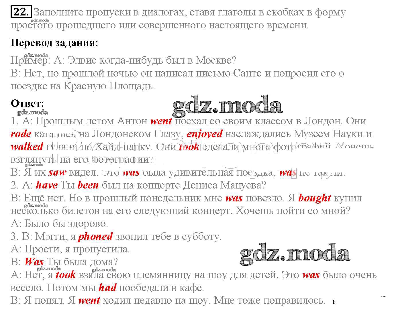 ОТВЕТ на задание № 22 Рабочая тетрадь по Английскому языку 6 класс Биболетова Enjoy English