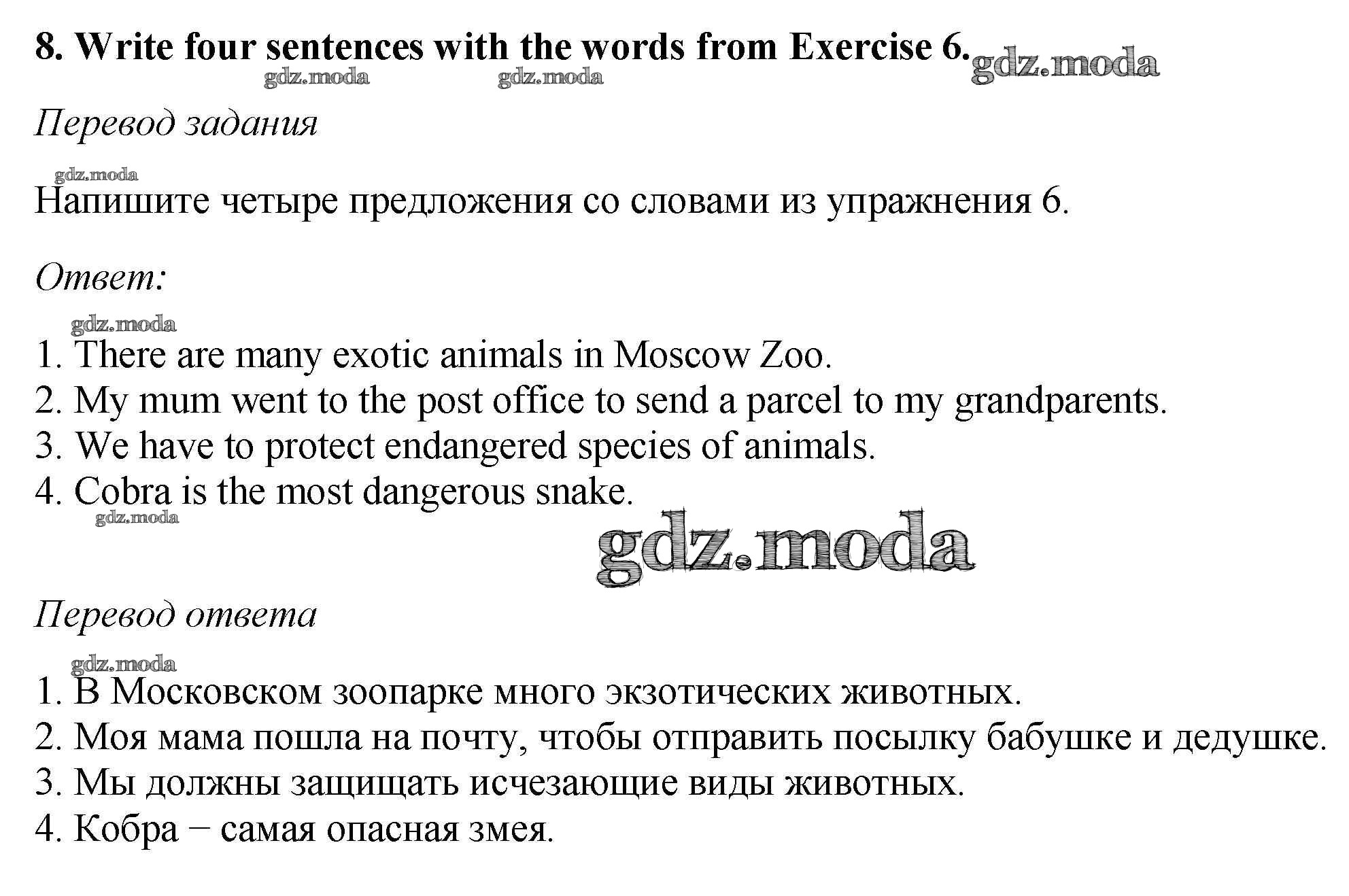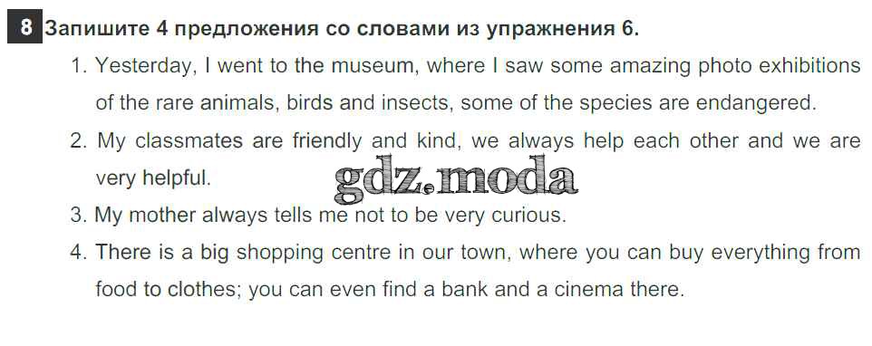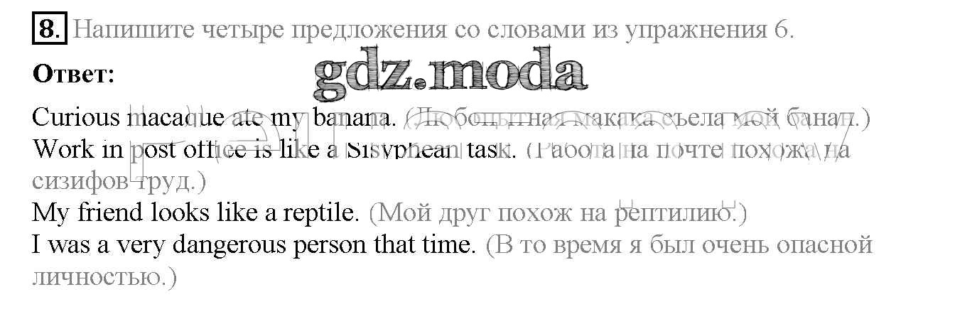 ОТВЕТ на задание № 8 Рабочая тетрадь по Английскому языку 6 класс Биболетова Enjoy English