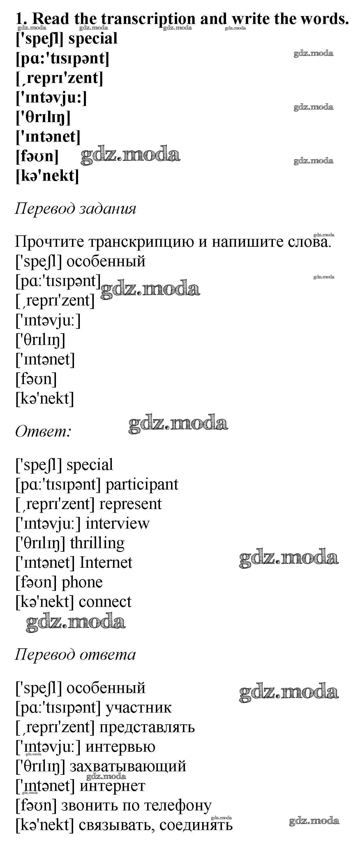 ОТВЕТ на задание № 1 Рабочая тетрадь по Английскому языку 6 класс Биболетова Enjoy English