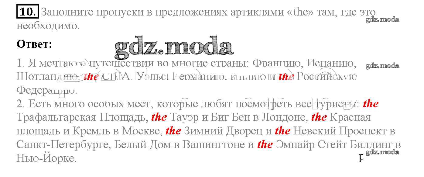 ОТВЕТ на задание № 10 Рабочая тетрадь по Английскому языку 6 класс Биболетова Enjoy English
