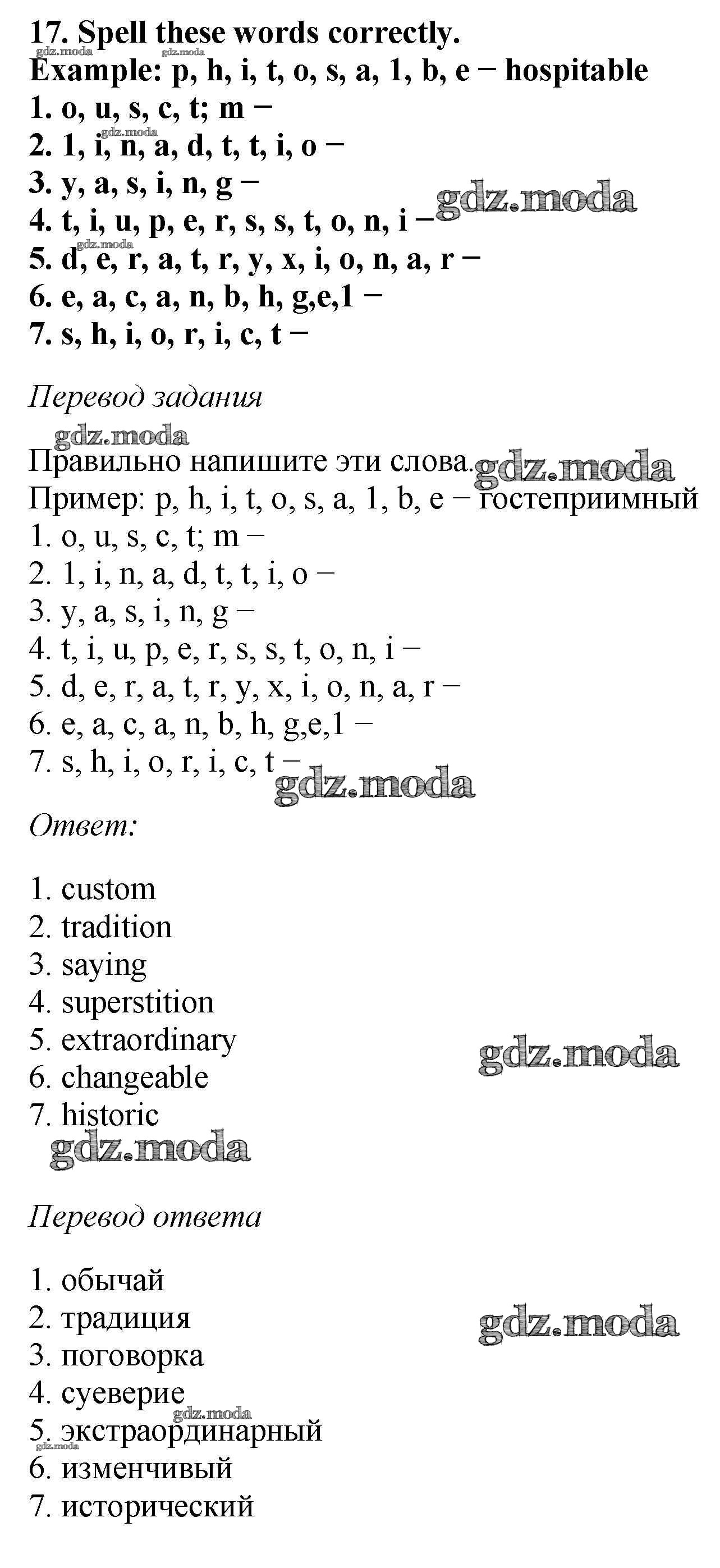 ОТВЕТ на задание № 17 Рабочая тетрадь по Английскому языку 6 класс Биболетова Enjoy English