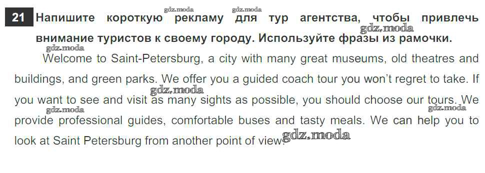 ОТВЕТ на задание № 21 Рабочая тетрадь по Английскому языку 6 класс Биболетова Enjoy English