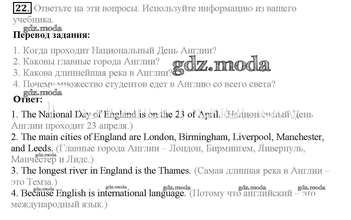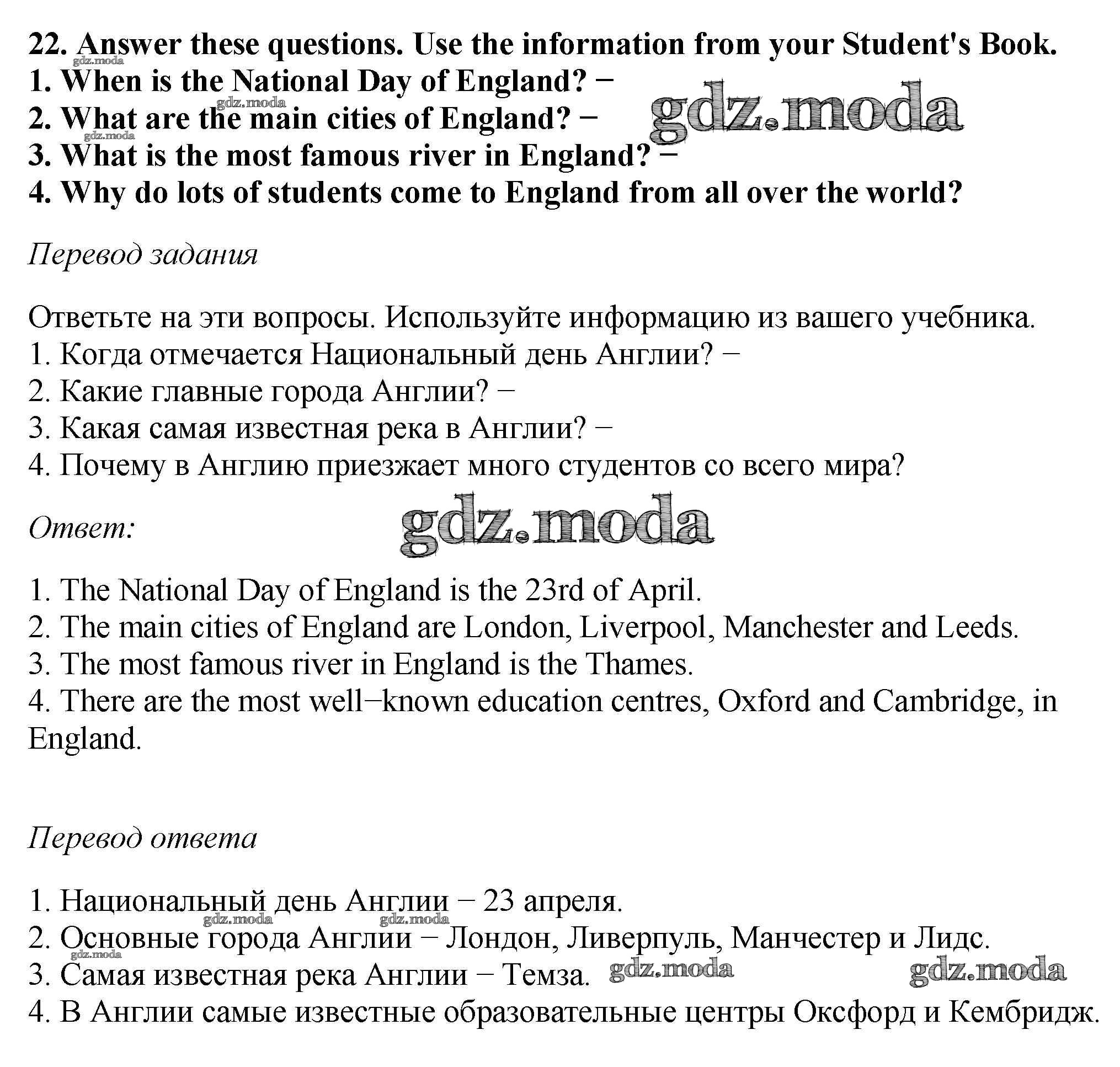 ОТВЕТ на задание № 22 Рабочая тетрадь по Английскому языку 6 класс Биболетова Enjoy English