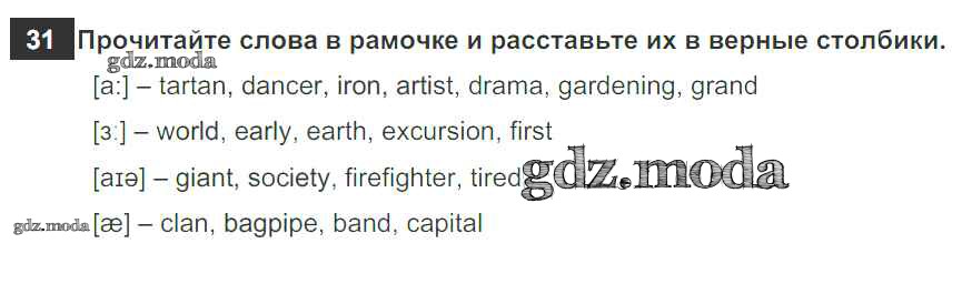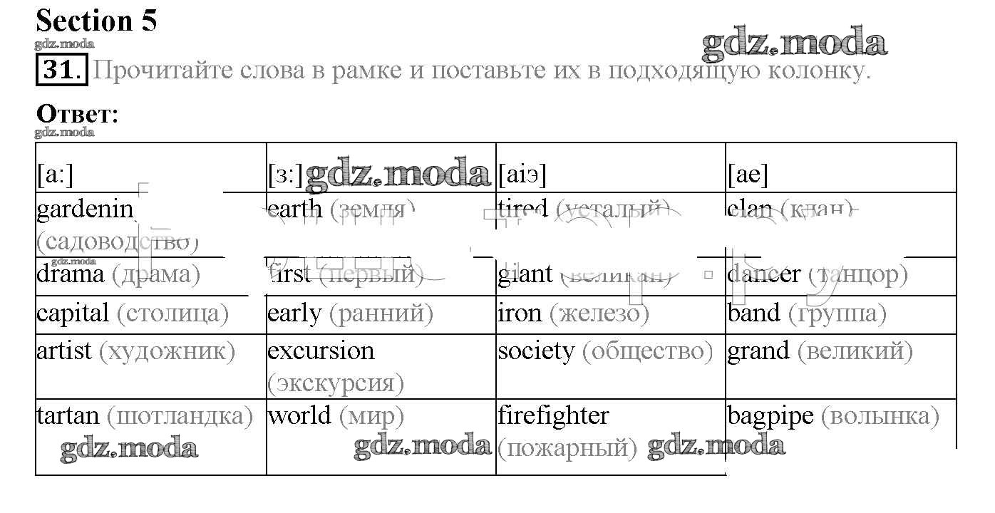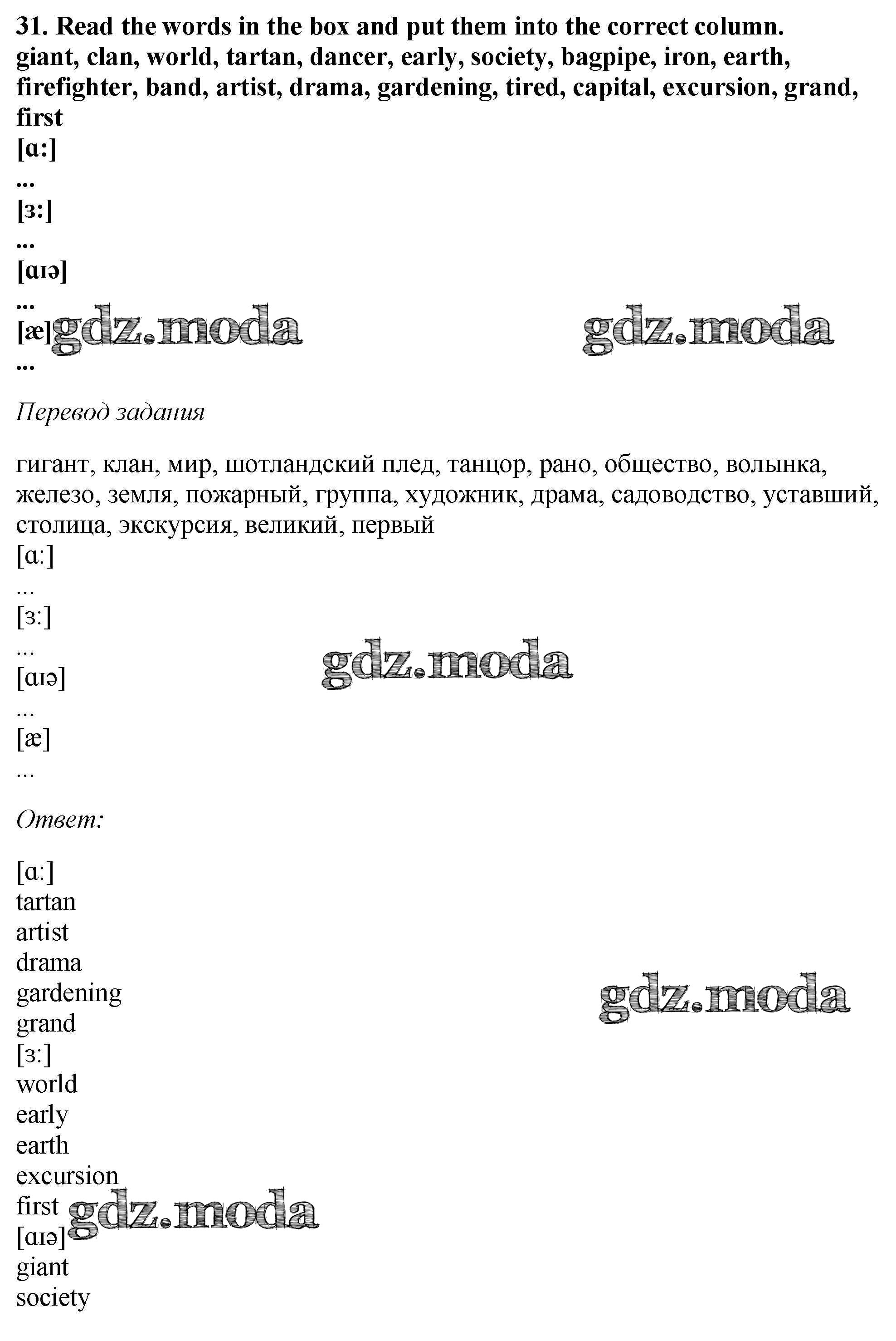 ОТВЕТ на задание № 31 Рабочая тетрадь по Английскому языку 6 класс Биболетова Enjoy English