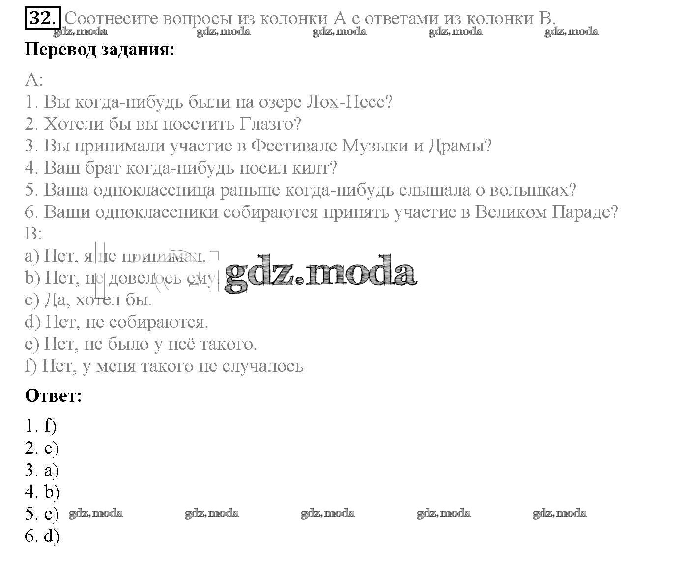 ОТВЕТ на задание № 32 Рабочая тетрадь по Английскому языку 6 класс Биболетова Enjoy English