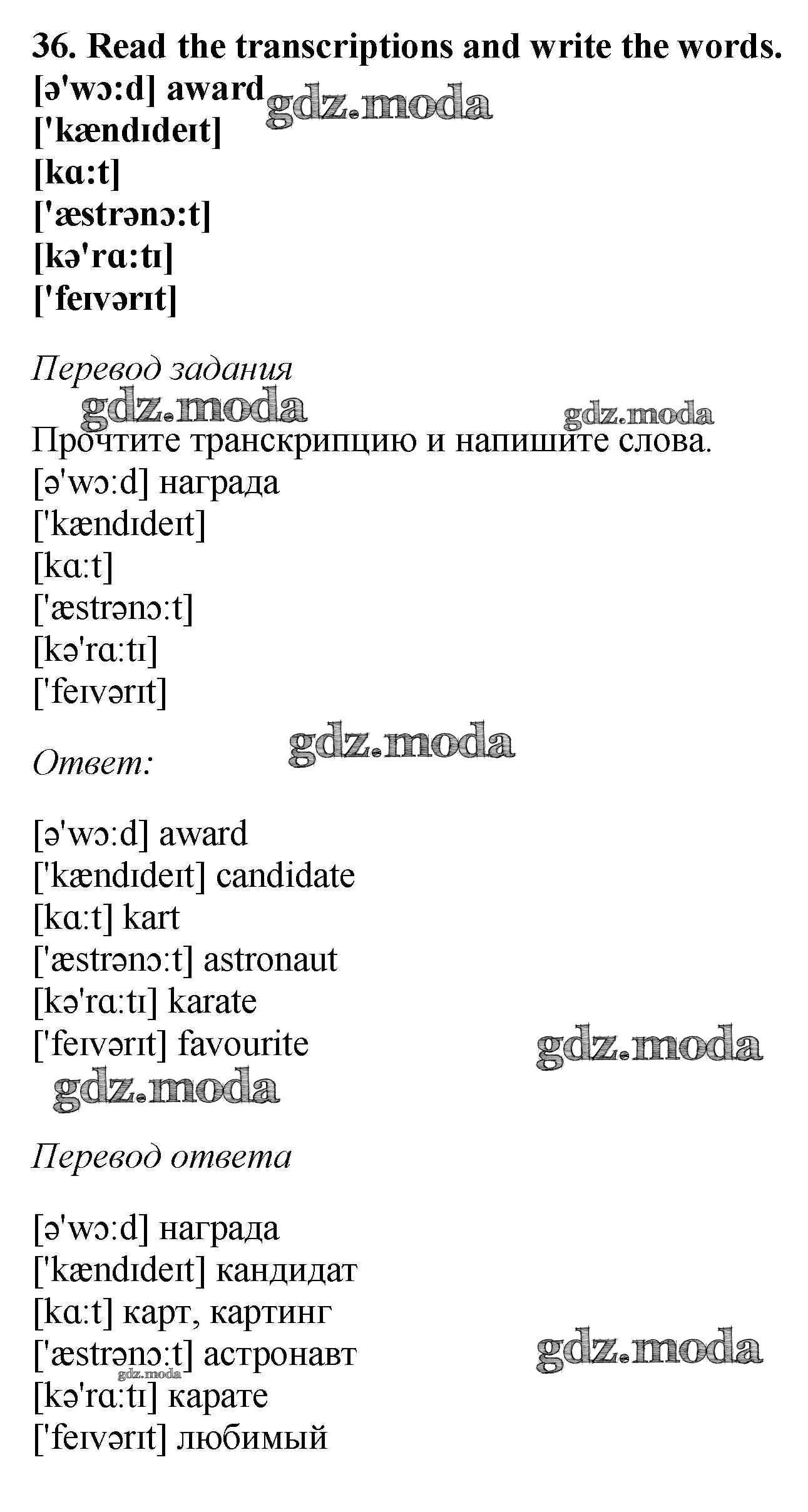ОТВЕТ на задание № 36 Рабочая тетрадь по Английскому языку 6 класс Биболетова Enjoy English