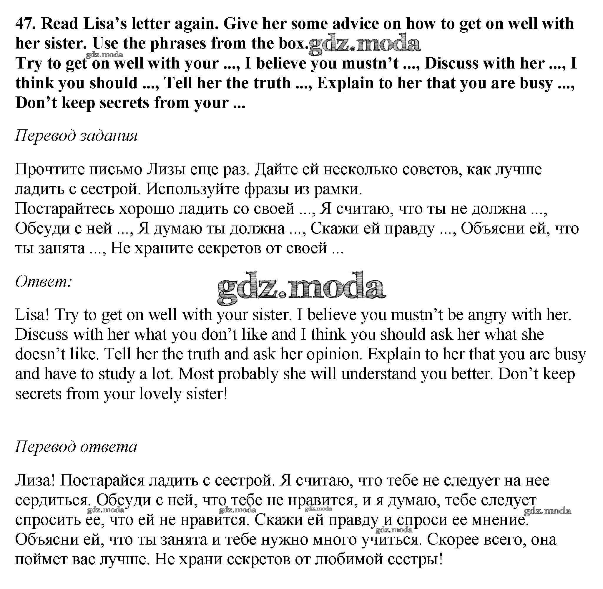 ОТВЕТ на задание № 47 Рабочая тетрадь по Английскому языку 6 класс Биболетова Enjoy English