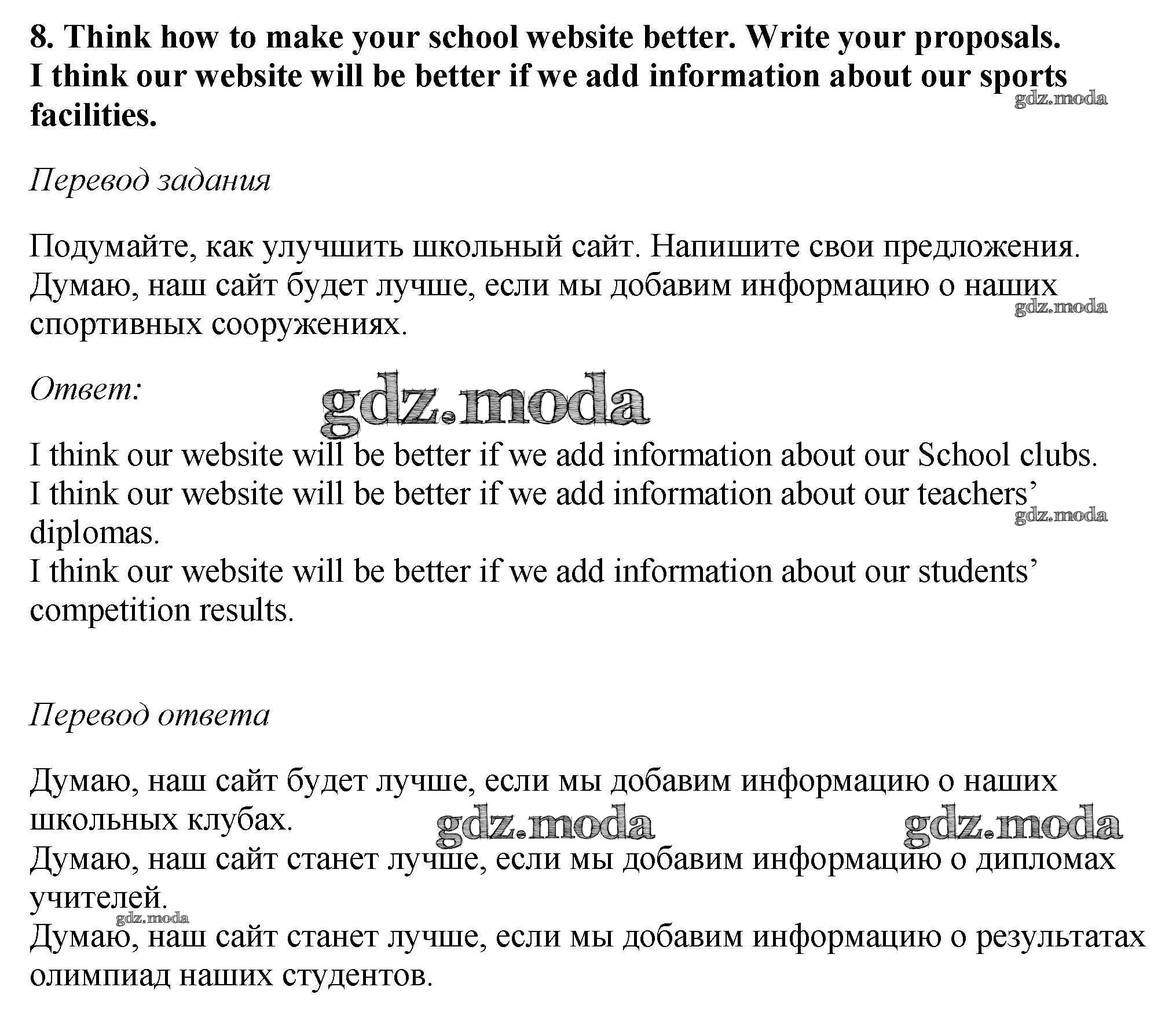 ОТВЕТ на задание № 8 Рабочая тетрадь по Английскому языку 6 класс Биболетова Enjoy English