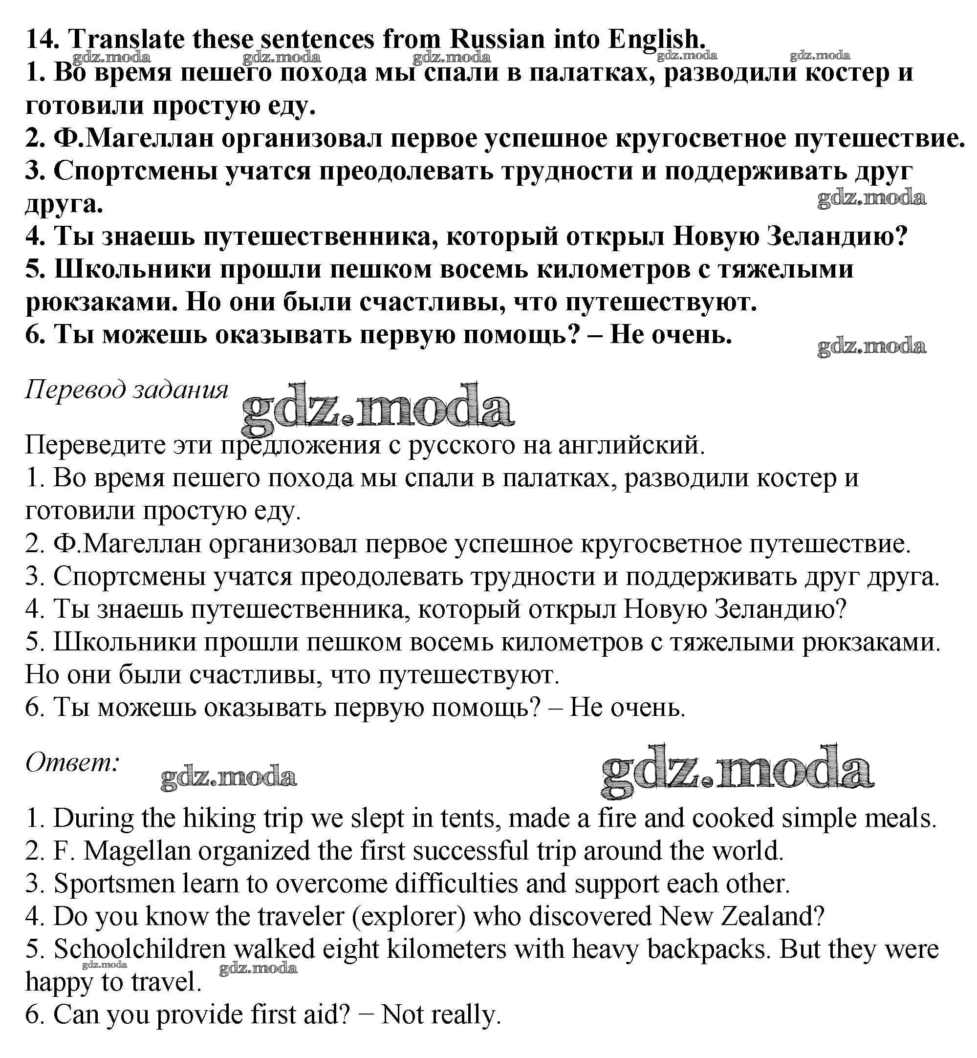ОТВЕТ на задание № 14 Рабочая тетрадь по Английскому языку 6 класс Биболетова Enjoy English
