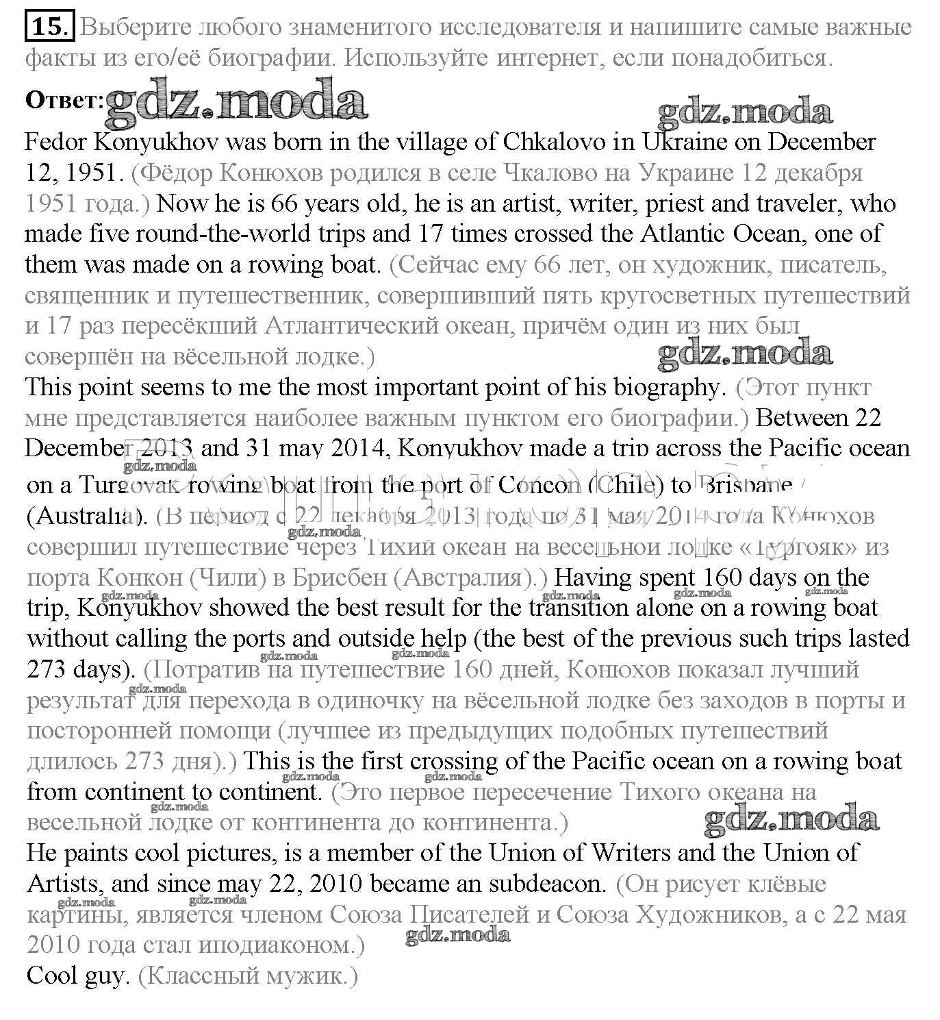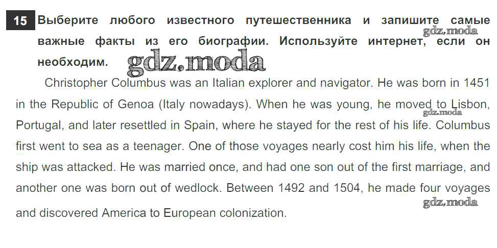 ОТВЕТ на задание № 15 Рабочая тетрадь по Английскому языку 6 класс Биболетова Enjoy English