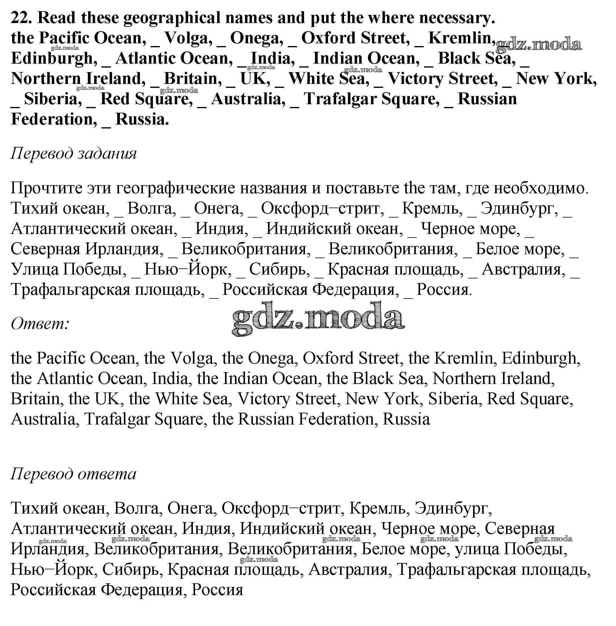ОТВЕТ на задание № 22 Рабочая тетрадь по Английскому языку 6 класс Биболетова Enjoy English