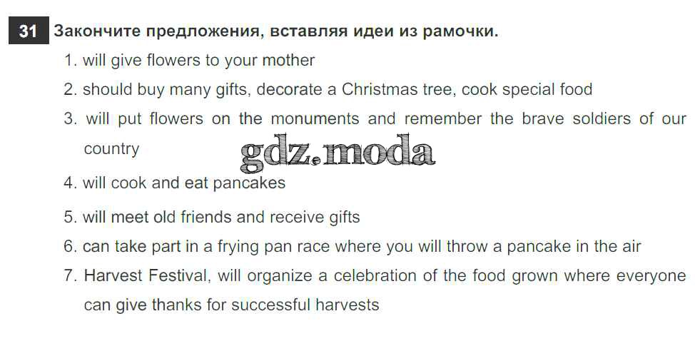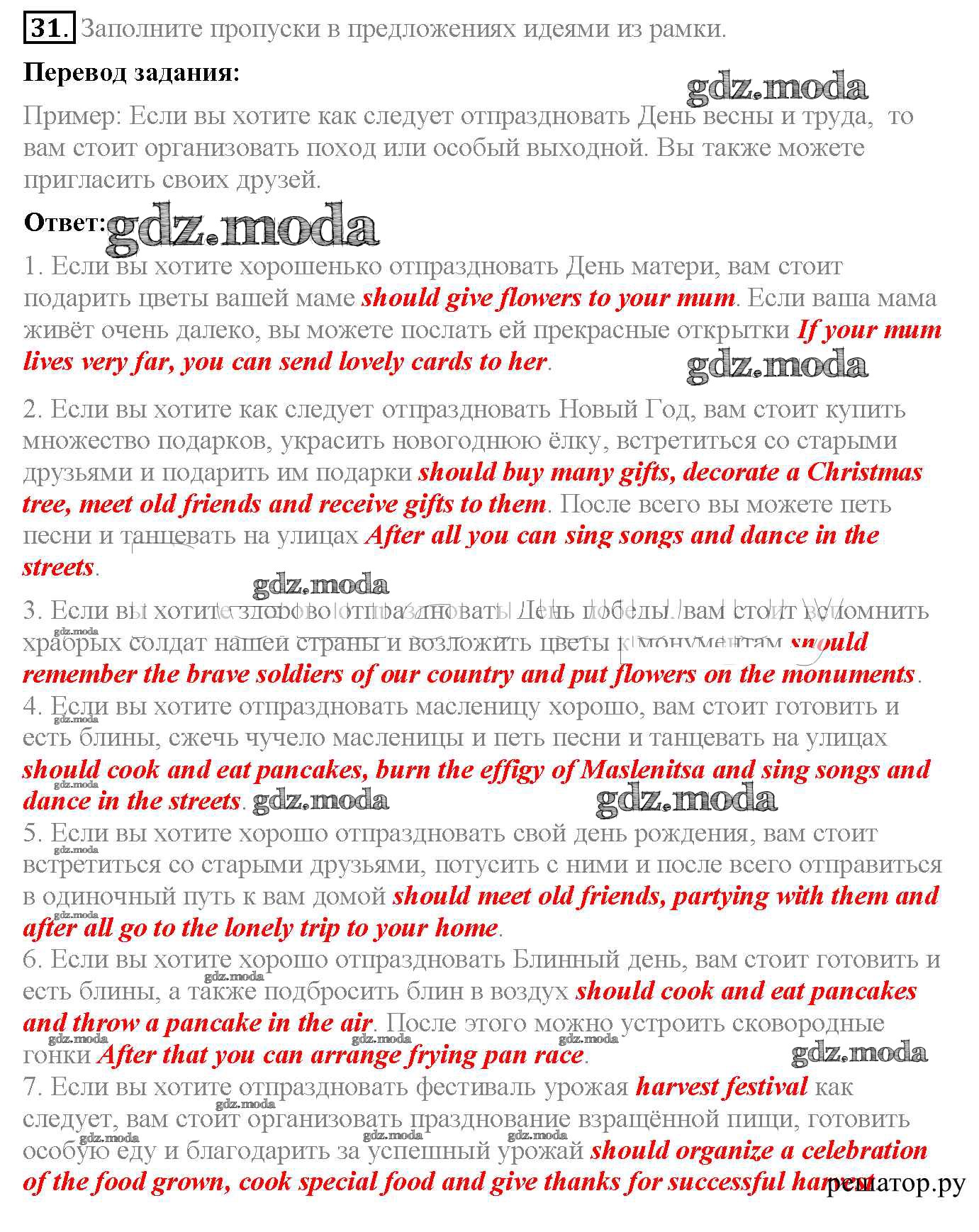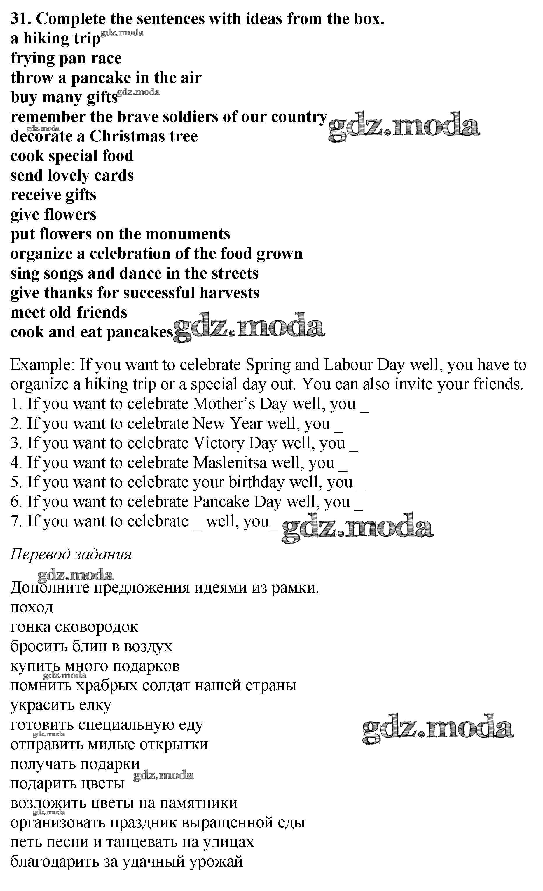ОТВЕТ на задание № 31 Рабочая тетрадь по Английскому языку 6 класс Биболетова Enjoy English