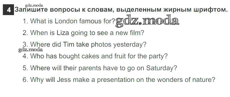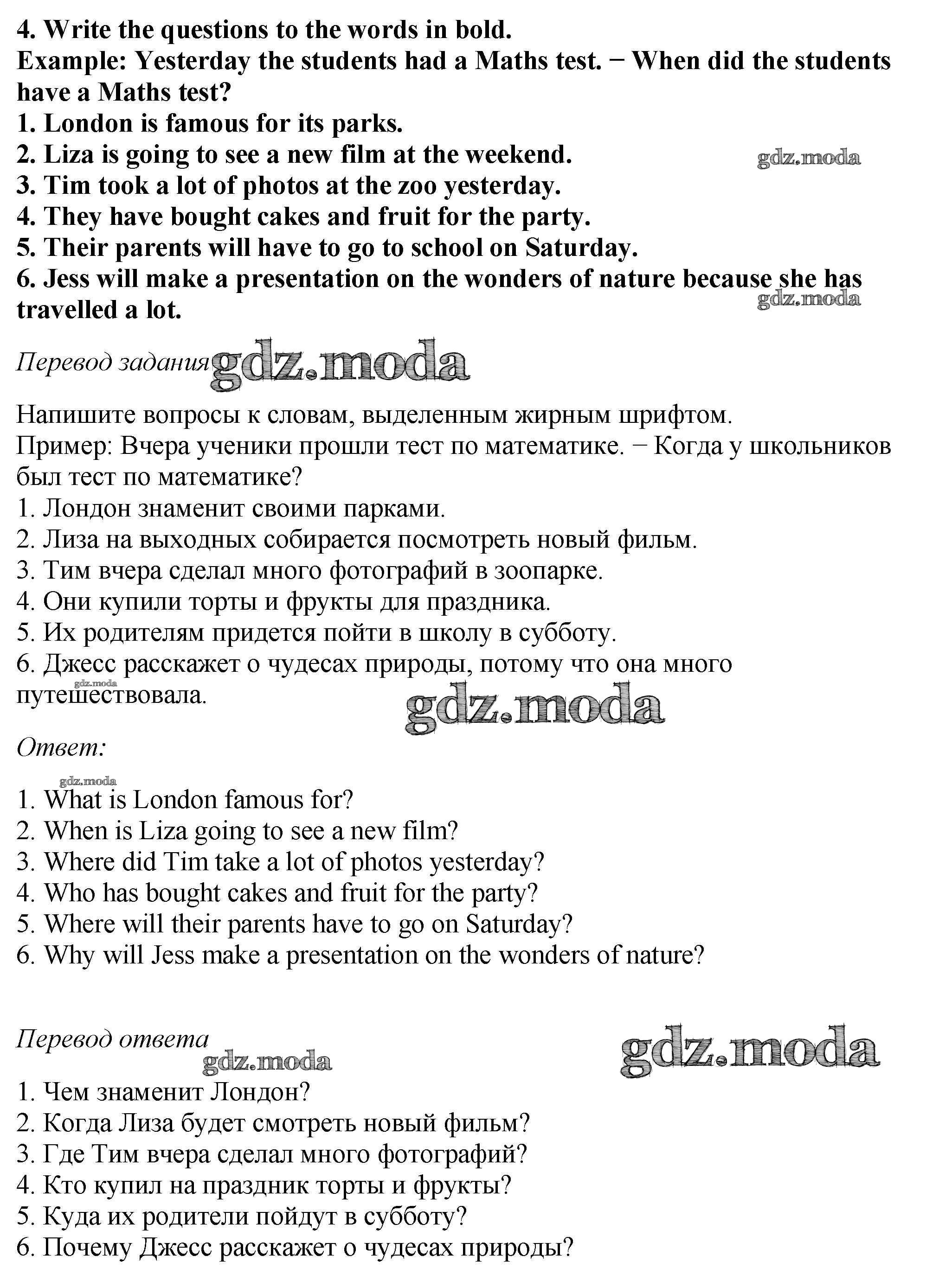 ОТВЕТ на задание № 4 Рабочая тетрадь по Английскому языку 6 класс Биболетова Enjoy English
