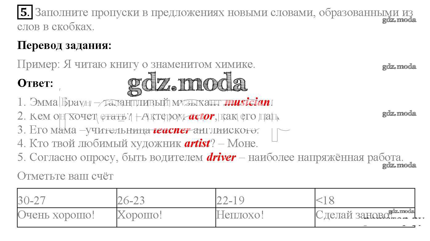 ОТВЕТ на задание № 5 Рабочая тетрадь по Английскому языку 6 класс Биболетова Enjoy English