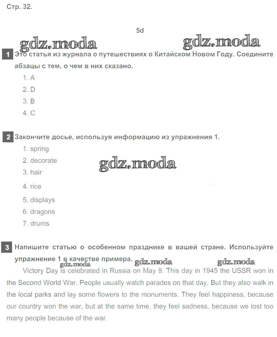 ГДЗ решение к заданию № 32 Английский язык 6 класс рабочая тетрадь Spotlight Ваулина Ю.Е. Просвещение 2016 ФГОС бесплатно на гдз.мода!