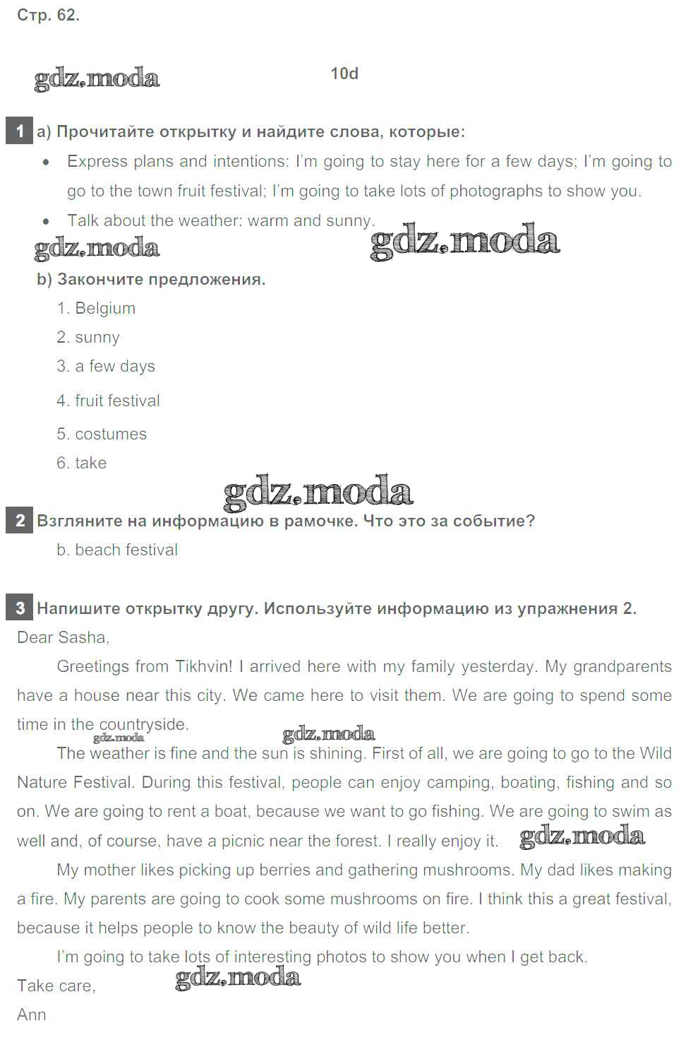 ГДЗ решение к заданию № 62 Английский язык 6 класс рабочая тетрадь Spotlight Ваулина Ю.Е. Просвещение 2016 ФГОС бесплатно на гдз.мода!