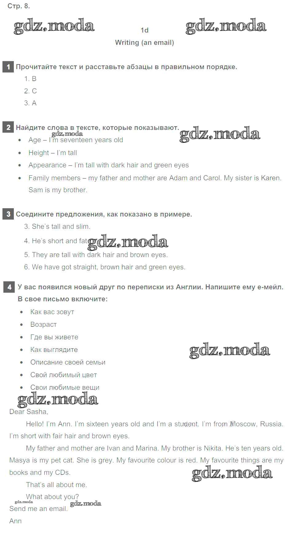 ГДЗ решение к заданию № 8 Английский язык 6 класс рабочая тетрадь Spotlight Ваулина Ю.Е. Просвещение 2016 ФГОС бесплатно на гдз.мода!