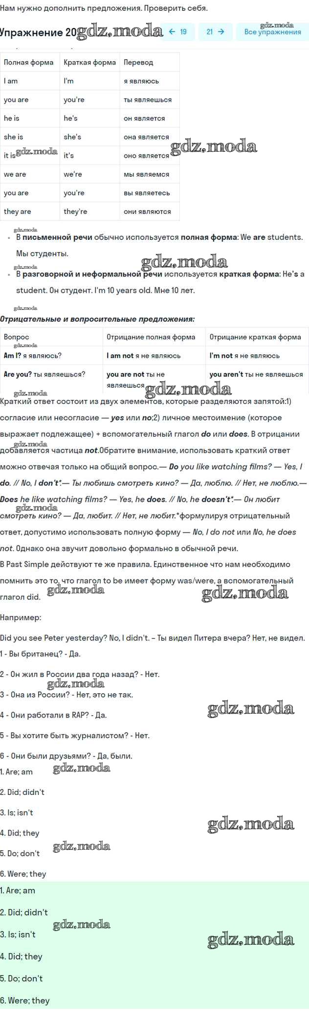 ОТВЕТ на задание № 20 Учебник по Английскому языку 6 класс Вербицкая Forward
