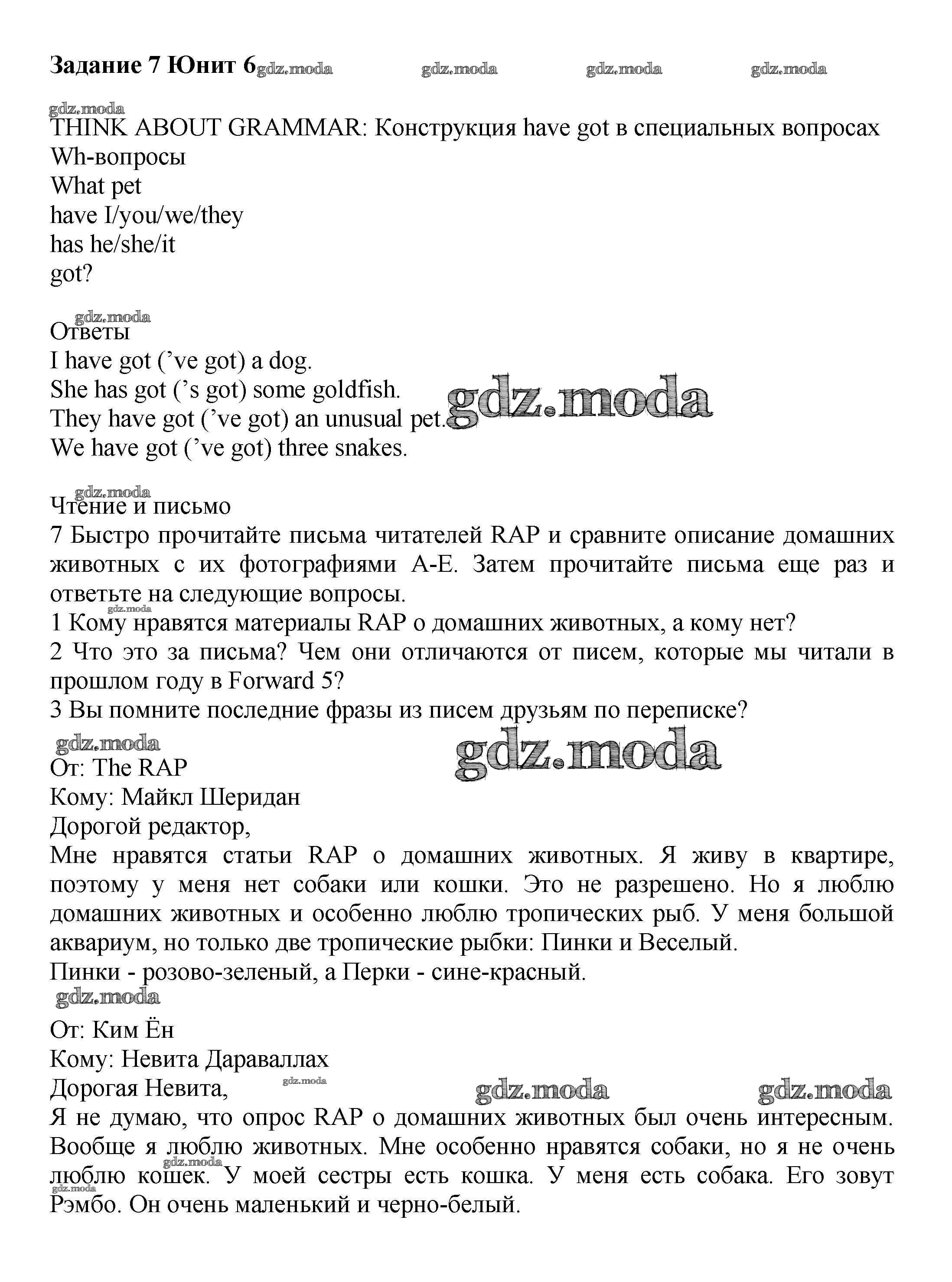 ОТВЕТ на задание № 7 Учебник по Английскому языку 6 класс Вербицкая Forward